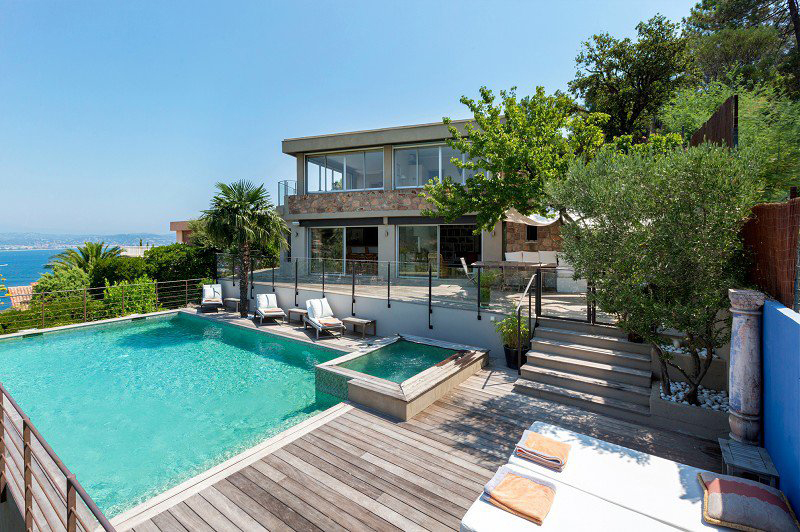 Bénéficiant d’une splendide vue sur la mer, les collines de Théoule-sur- Mer et la baie de Cannes, belle villa d’inspiration contemporaine.