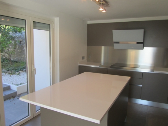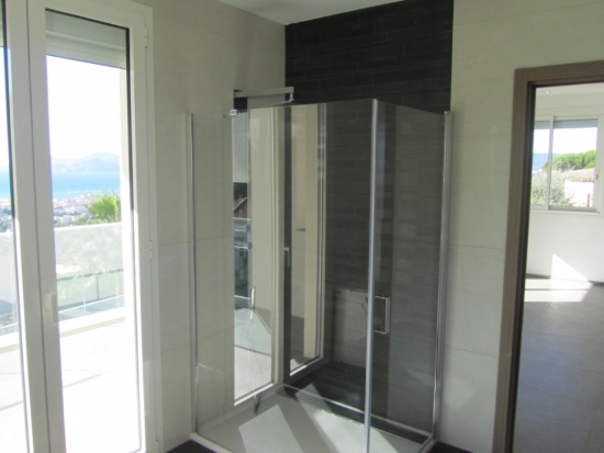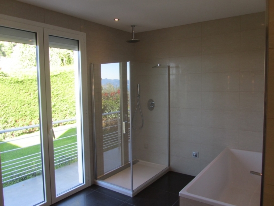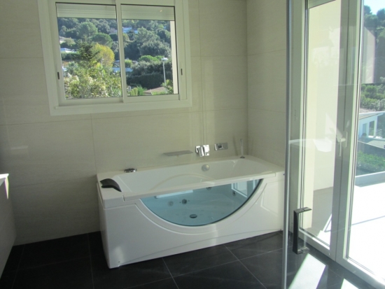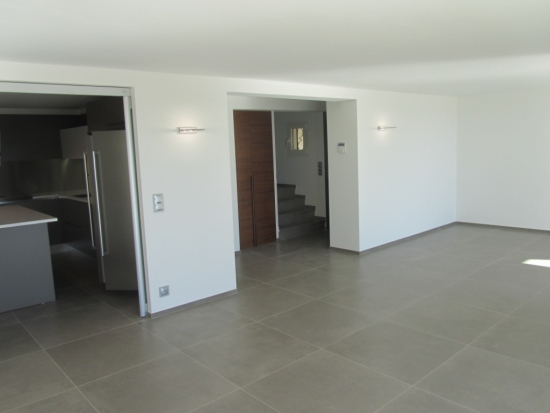 La villa principale de 185 m2: Salon, cuisine, cinéma maison, WC, 3 chambres, chacune avec salle de bain privée.