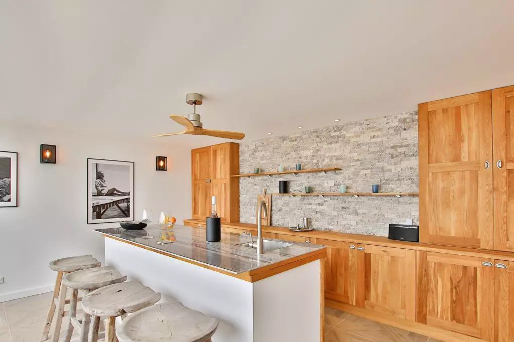 Au rez-de-chaussée : hall d'entrée, double séjour, salle à manger, cuisine et lave-vaisselle, buanderie séparée, toilettes invités, bureau, grande chambre double avec salle de douche attenante et terrasse privative.