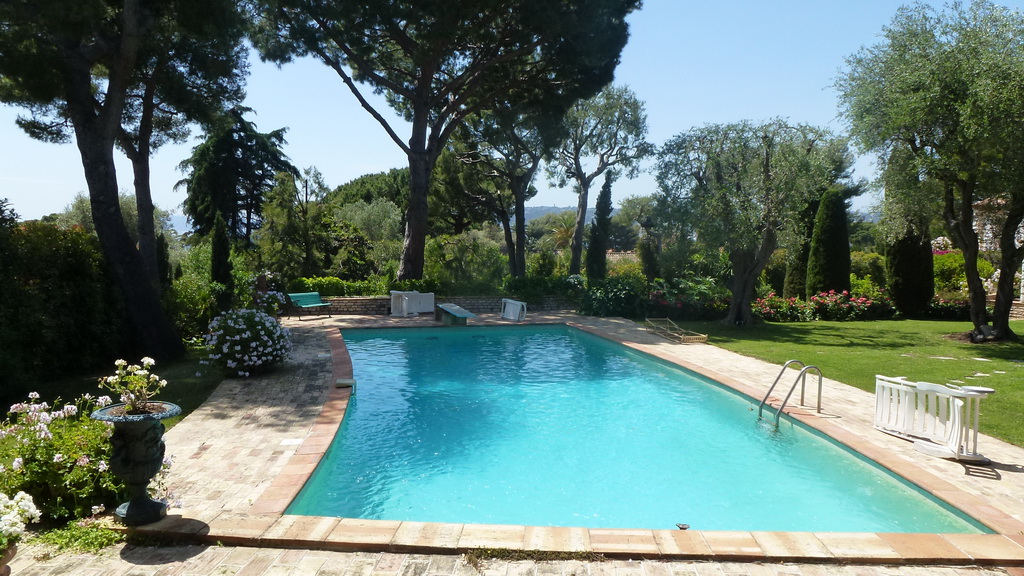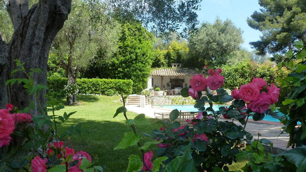 Sur le territoire d'un beau jardin plat avec des arbres centenaires, piscine chauffée, un barbecue et une cuisine d'été.