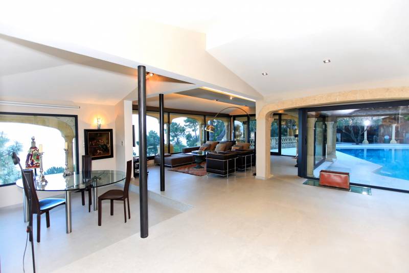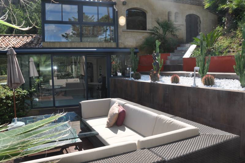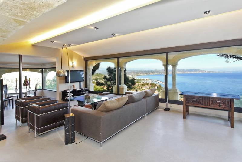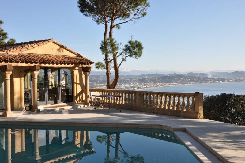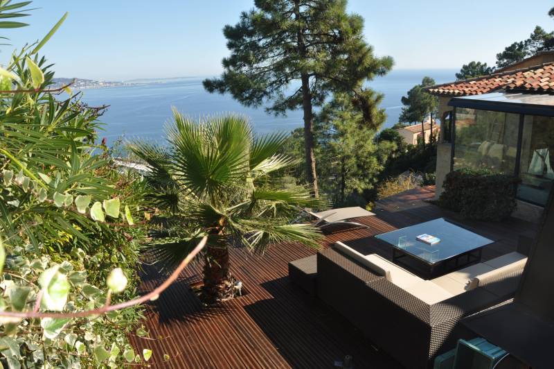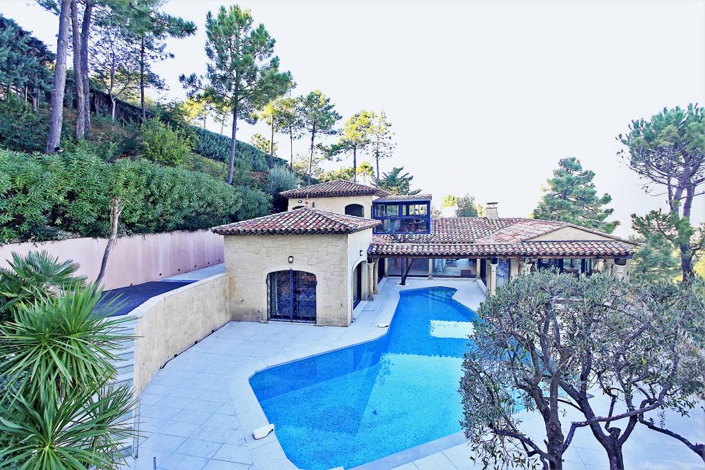 Zone fermée se trouve sur la position dominante à Théoule-sur-Mer. Vue panoramique sur la mer, Cannes et les îles Lerins. Belle villa de 350 m2. Nouvelle restauration. 2200 m2 de jardin avec de belles plantes. Piscine. Pool house. 4 places de parking. La villa est orientée vers la partie sud-est.