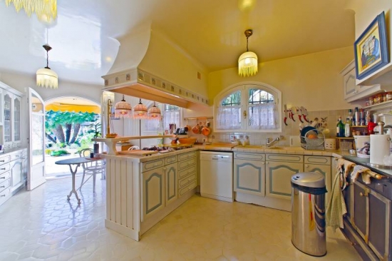 Offre unique . Au coeur de la Californie dans un espace clos avec vue sur la baie de Cannes , les îles de Lérins et Cap d'Antibes il y a dans un villa exclusive un style provençal moderne . La villa principale de 450 m2 , une maison d'hôtes de 60 m2 et un appartement indépendant de 30 m2 . Beau jardin paysagé , piscine , sauna , salle de gym , la moitié cour , garage 2 voitures , 4 places de parking . Orientation: Sud Rez de jardin: Hall d'entrée , salon, salle à manger , cuisine, buanderie , chambre de maître ( avec une mezzanine et une salle de bains ) 1er étage : 2 chambres (chacune avec salle de douche ), une chambre de maître (avec étude , dressing , salle de bains , d'une terrasse donnant sur la mer ) , une chambre ( avec une mezzanine et une salle de bains ) Sous-sol: Gym ( avec sauna et douche ) , buanderie , 2 caves Garde maison: Salon, cuisine , chambre à coucher ( avec douche ) Annexe: Bureau ( 42 m² avec cheminée , douche ) Services: Checkpoint , volets roulants électriques, système d'irrigation , système d'alarme, portail électrique , piscine Près de l'aéroport (20 minutes ) , dans le centre-ville (5 minutes) Hypothèque de 100% , le 2 - 2,5% par an