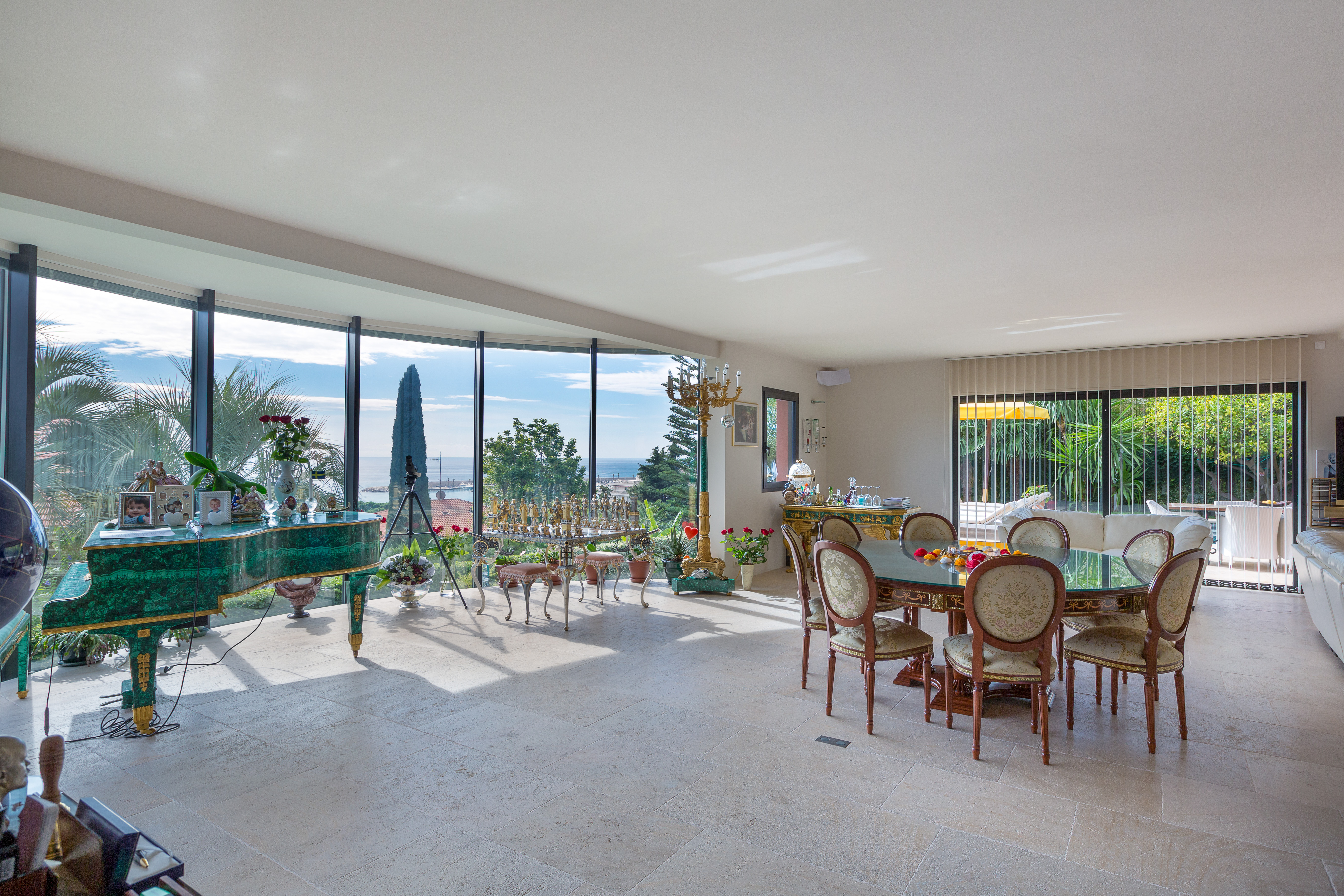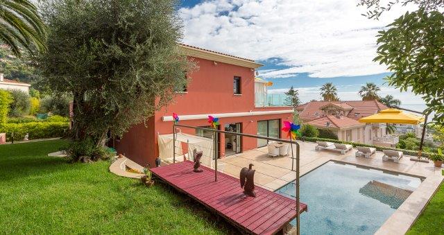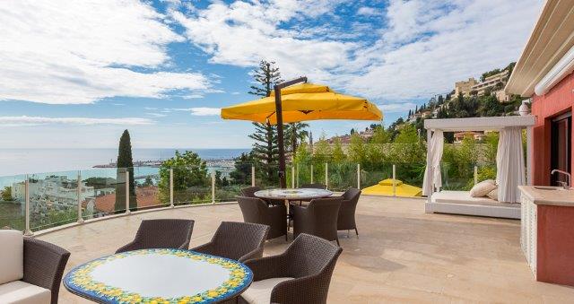 Somptueuse villa d'exception de 550 m2 bâtie sur un terrain de 1500 m2. Au cœur d'un domaine privé sécurisé, la villa propose des prestations de très grand luxe. Face à la mer et au port de Menton, avec son exposition optimale, elle offre un cadre de vie exceptionnel. Elle se compose de 6 chambres, 5 salles de bains et 3 salles de douche, un grand salon – salle à manger, 2 cuisines, une salle de sport et une salle de massage, deux garages pour 3 voitures au total. Chauffage au sol et climatisation dans toute la villa. Un bel ascenseur desservan.
