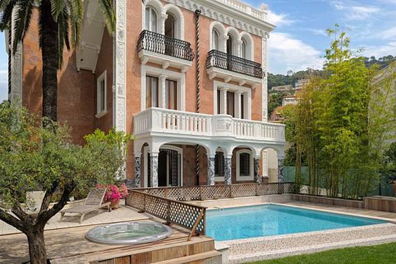 Immobilier de prestige sur la Côte d'Azur. Maison de luxe dans le style vénitien, avec un mobilier luxueux et un décor élégant. Ce monument de l'architecture du passé, son charme de patrimoine historique, même l'acheteur le plus exigé. La villa est construite en 3 étages. Dans le jardin paysager, planté d'oliviers, de palmiers et de bambous. Il ya aussi une piscine et un grand jacuzzi.