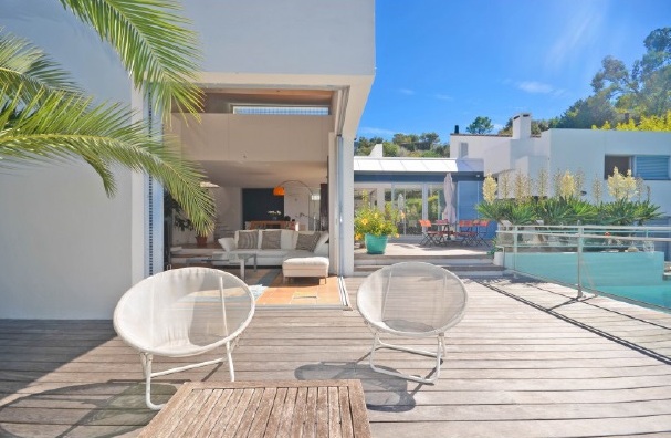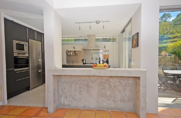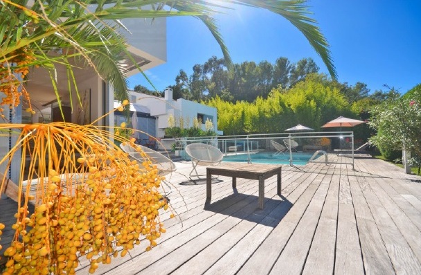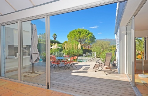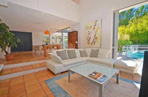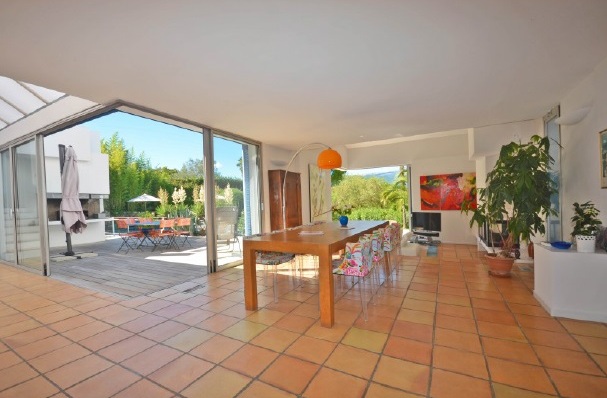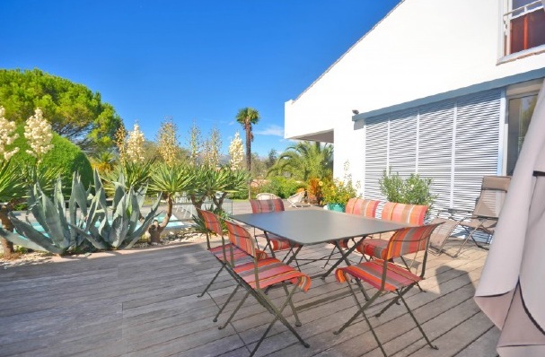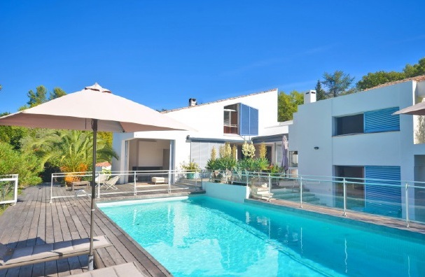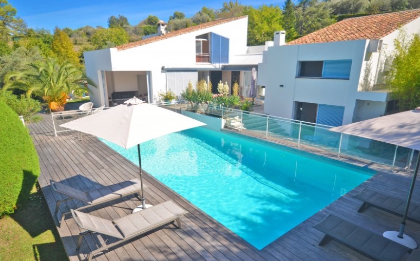 Belle villa moderne avec piscine et jardin sur la Côte d'Azur à Mouans Sartoux dans un quartier calme à proximité des commerces et a une belle vue de la ville.
