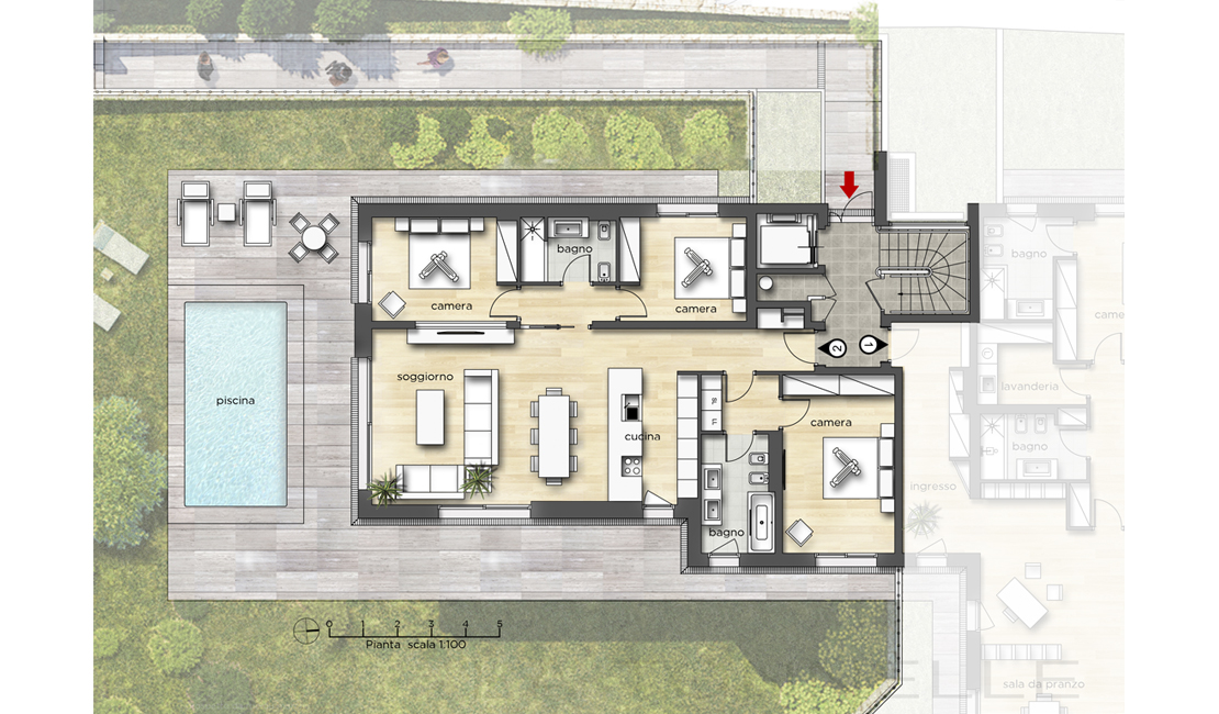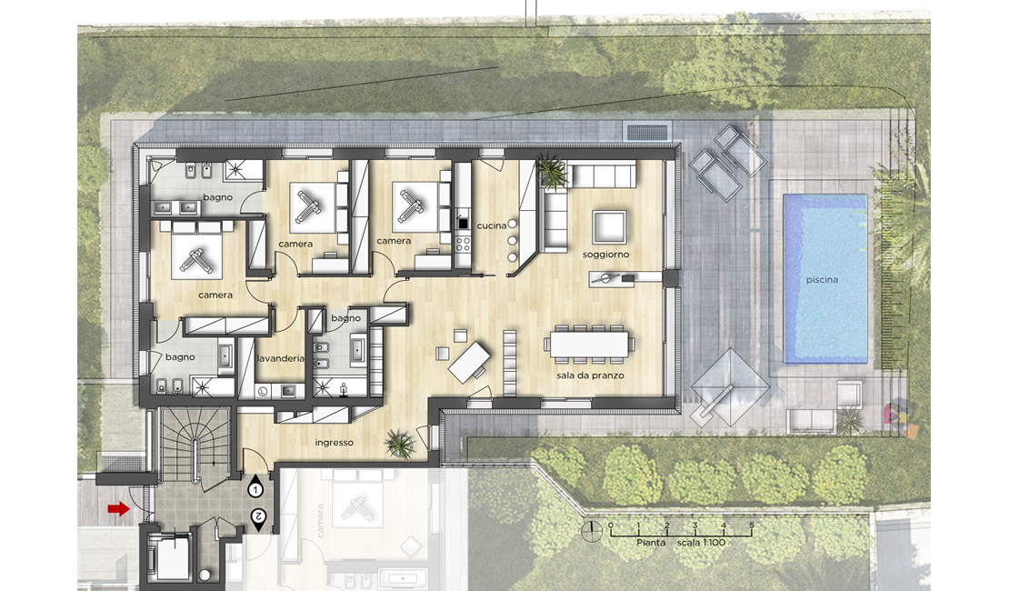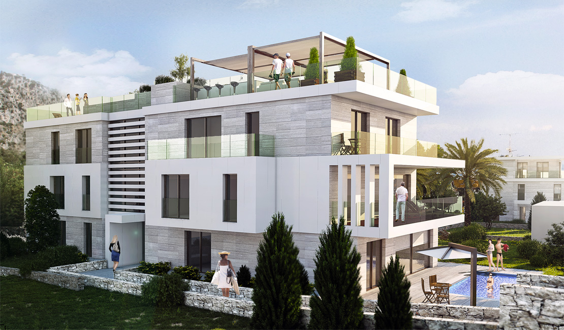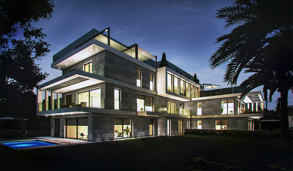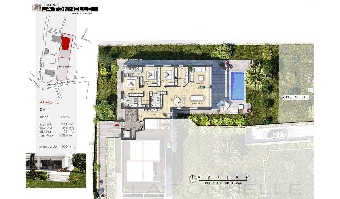 La résidence "La Tonnelle" consiste en la construction d'une villa indépendante et d'un petit immeuble collectif comprenant cinq appartements chacun disposant de vastes terrasses, piscine privée pour les rez-de-jardin, jacuzzi pour les premiers étages et un magni que penthouse avec solarium et piscine sur le toit. Les deux rez-de-jardin possèdent chacun un jardin à usage privatif ainsi qu'une piscine privée dans la continuité de la partie habitable ce qui permet de créer un espace unique entre zone intérieure et extérieure.