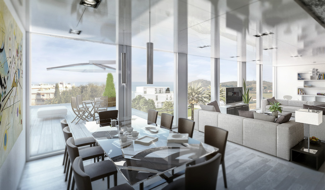 Chaque appartement sera équipé d'un système électrique automatisé, d'un système d'alarme avec vidéo surveillance et d'un système de chauffage et climatisation basse consommation intégré dans les plafonds pour chacune des pièces ainsi qu'un système de VMC. La production d'eau chaude se fera par un cumulus dernière génération situé au sous sol et doté d'un système de recyclage, les cuisines seront pré-équipées pour recevoir les plaques de cuisson électriques, chaque lot sera équipé d'un parlophone couleur et d'une porte blindée. Les jardins privés, zones vertes de copropriété seront équipés d'un système d'irrigation, complantés et agrémentés de pelouse. Le revêtement des allées extérieures et des plages piscine sera réalisé en pierre naturelle dans le respect de l'environnement. Les menuiseries extérieures des logements seront en aluminium à pont thermique et équipées de double vitrage (un vitrage anti effraction sera installé au niveau rez-de-jardin). Tous les châssis seront munis de stores et/ou de brises soleil.