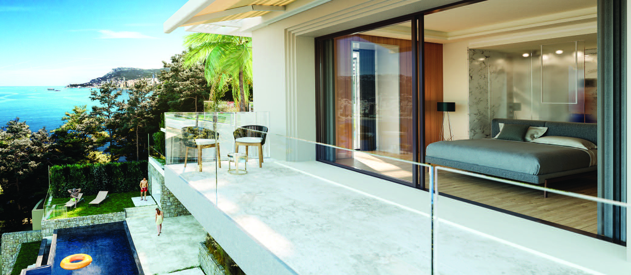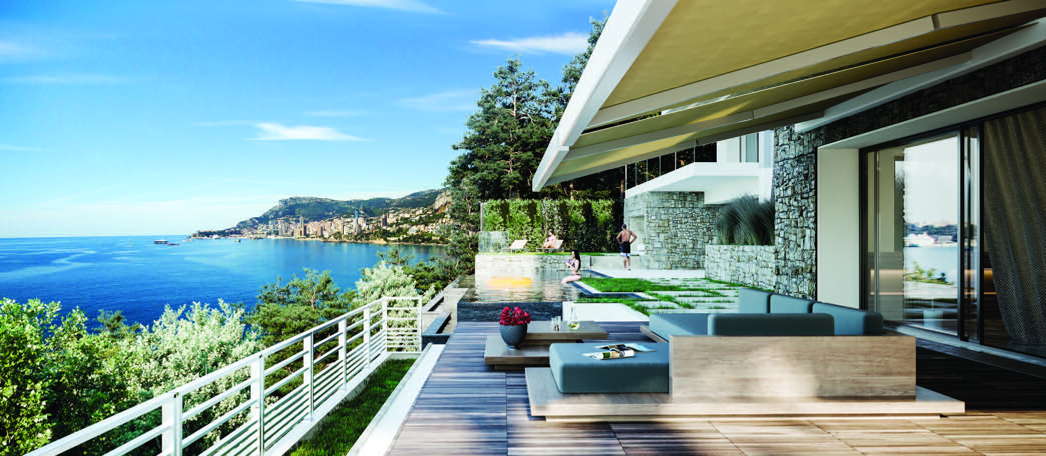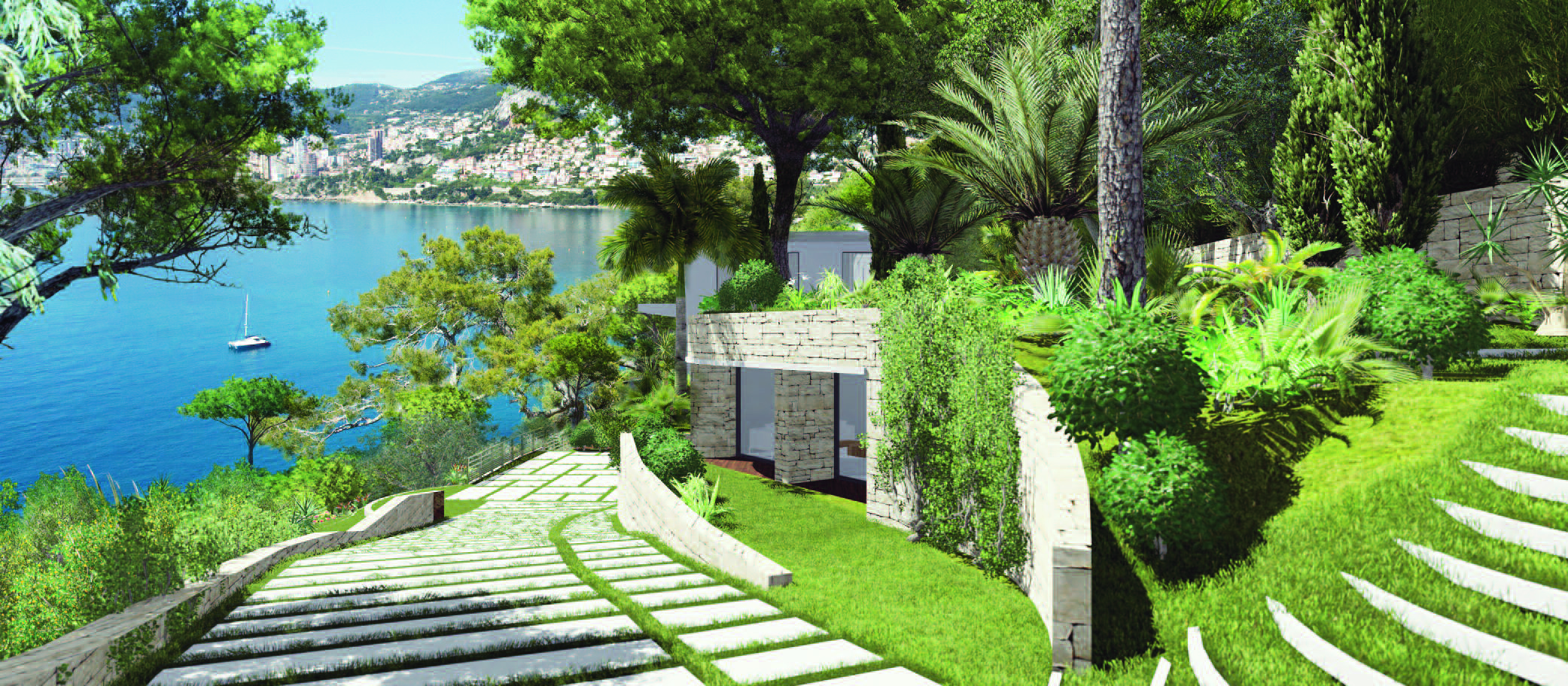 Il semble que le territoire de la Villa La Falaise ait été créé par la nature elle-même. Ayant la forme d'un amphithéâtre, il permet de profiter de la vue principale - la mer azurée s'étendant au-delà de l'horizon de la Côte d'Azur et sa perle - Monte Carlo.