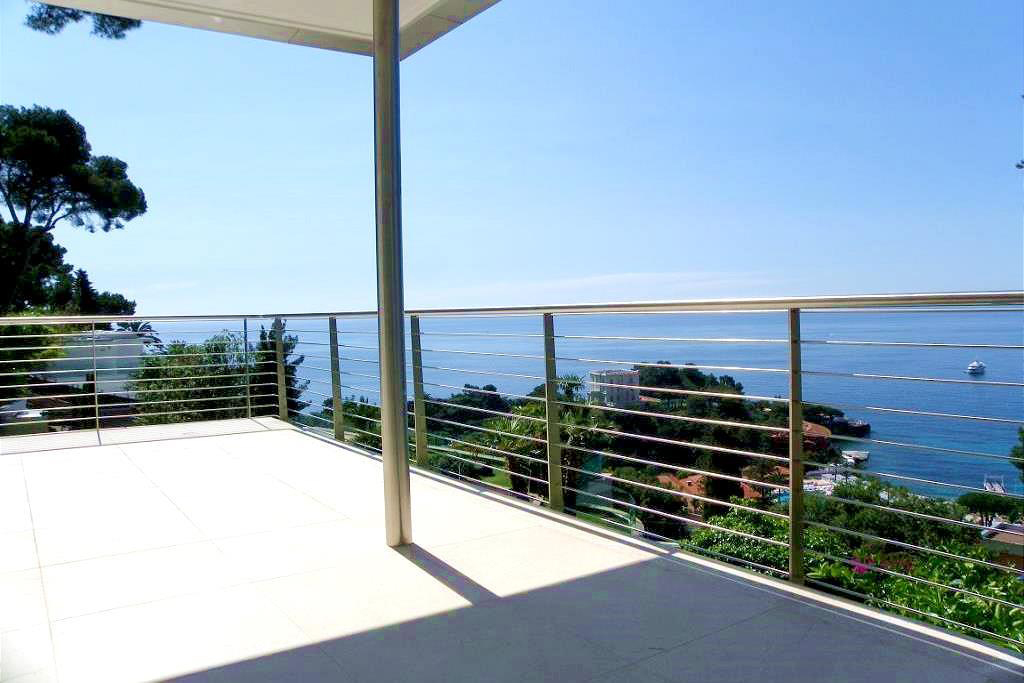 Sublime villa d'architecte neuve avec des préstations luxueuses située dans un domaine privé de la Vigie à Roquebrune-Cap-Martin et à quelques pas du Monte-Carlo Beach et du Country Club de Monaco.
