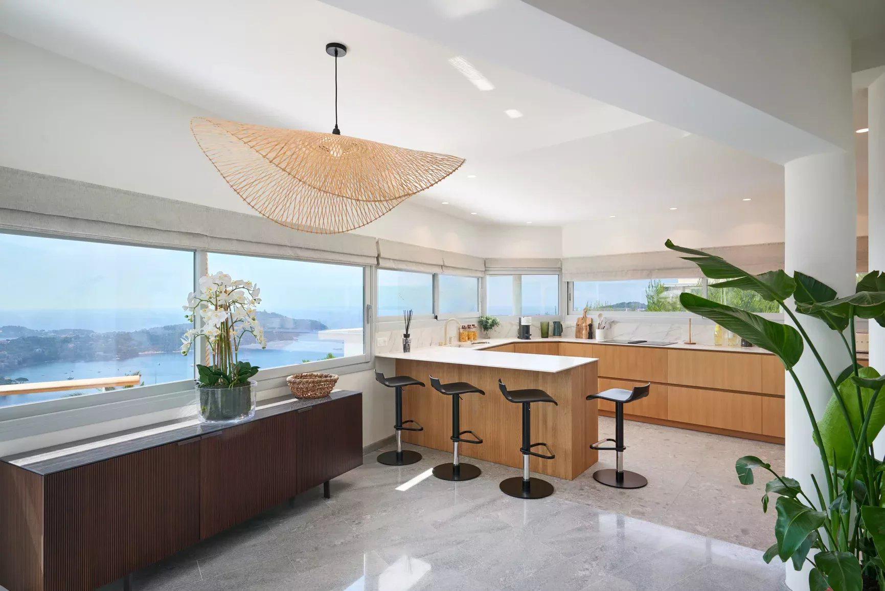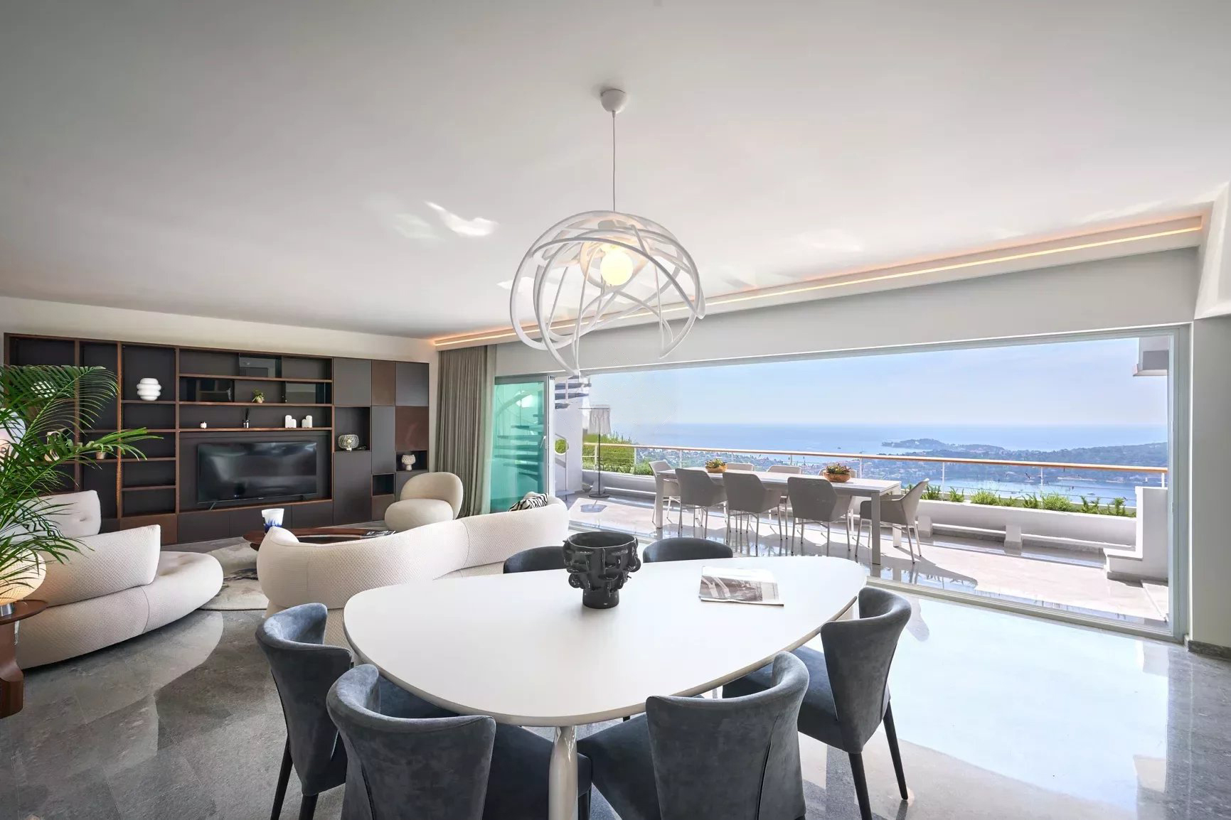 La villa dispose également d'espaces de vie extérieurs, idéaux pour profiter du climat méditerranéen. Que vous vous prélassiez au bord de la piscine, dîniez en plein air sur la terrasse ou profitiez simplement de la vue à couper le souffle, les espaces extérieurs offrent un havre de détente et de tranquillité.
