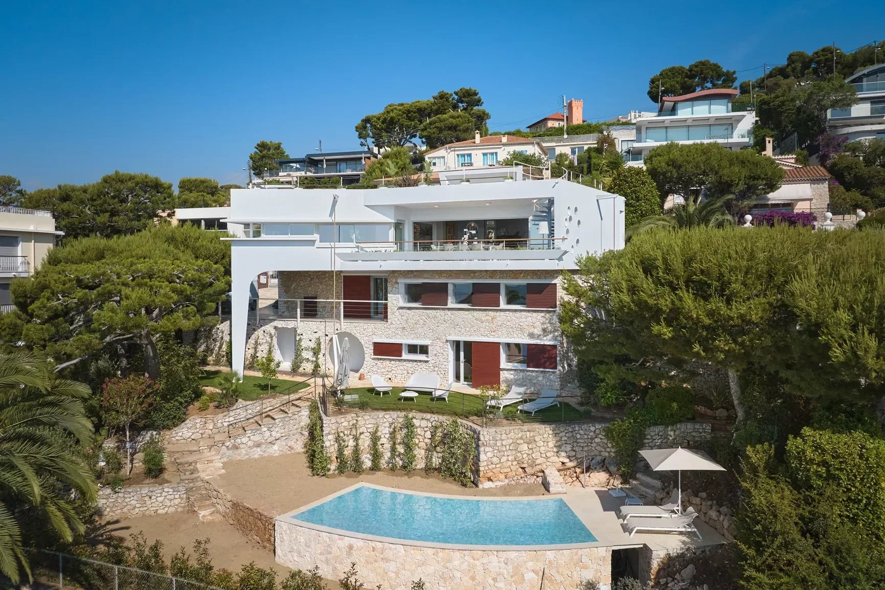Une belle villa contemporaine construite par l'architecte de renom Guy Rottier, située à Villefranche-sur-Mer, offrant une surface habitable luxueuse et spacieuse de 285 m2. Situé dans un endroit magnifique avec une vue panoramique imprenable sur la mer. La villa a été entièrement rénovée pour offrir un intérieur moderne et élégant.