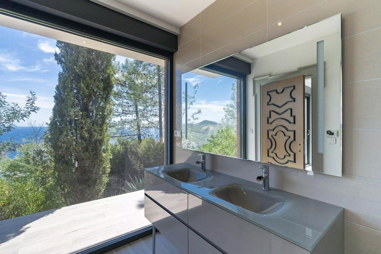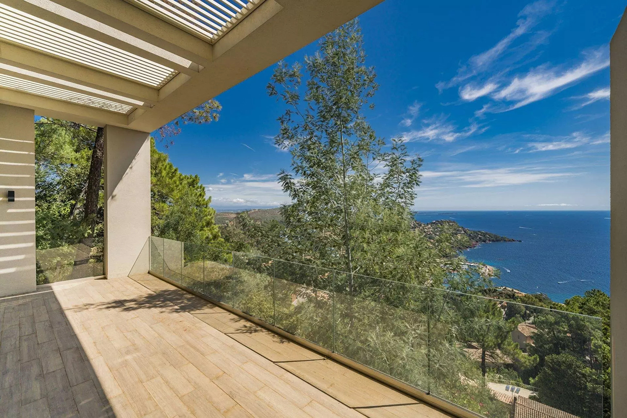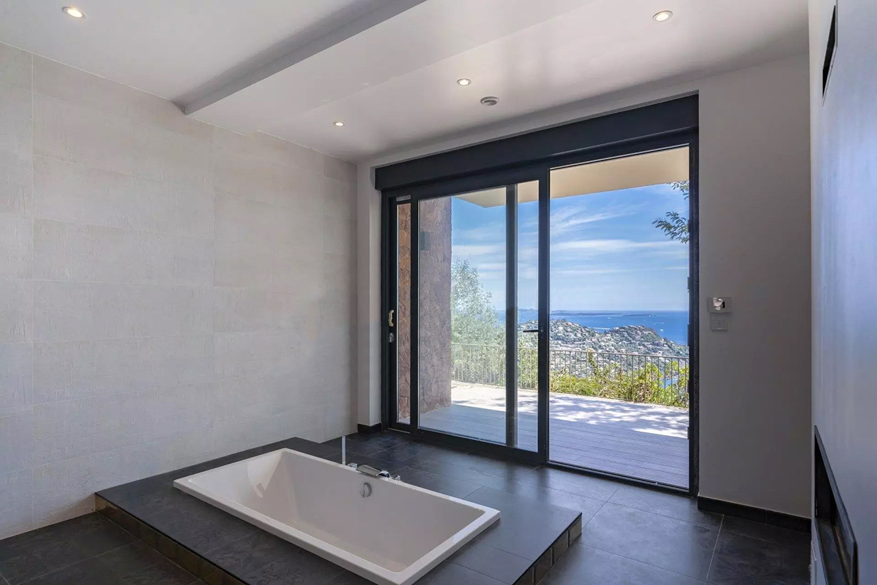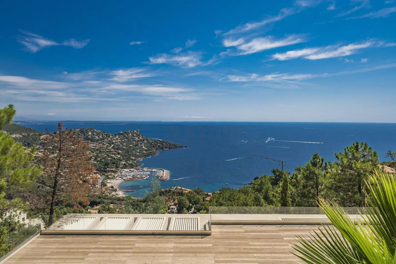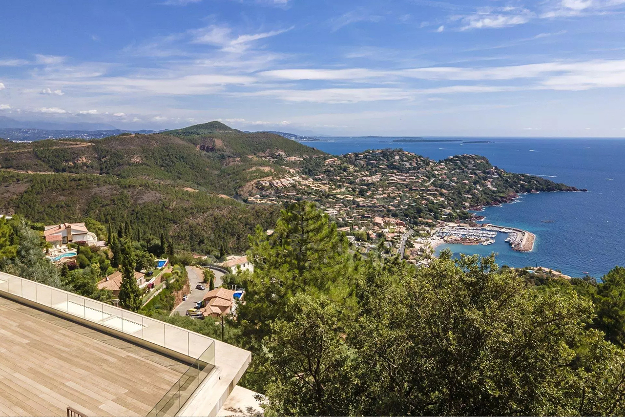 Cette nouvelle villa ultra-moderne est située en position dominante sur la colline de Miramar. Il offre une magnifique vue panoramique sur toute la Baie de Cannes et l'Estérel.