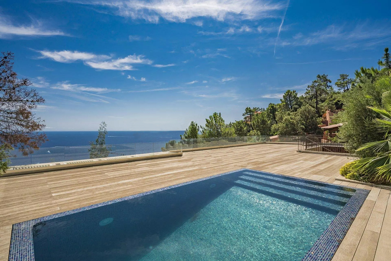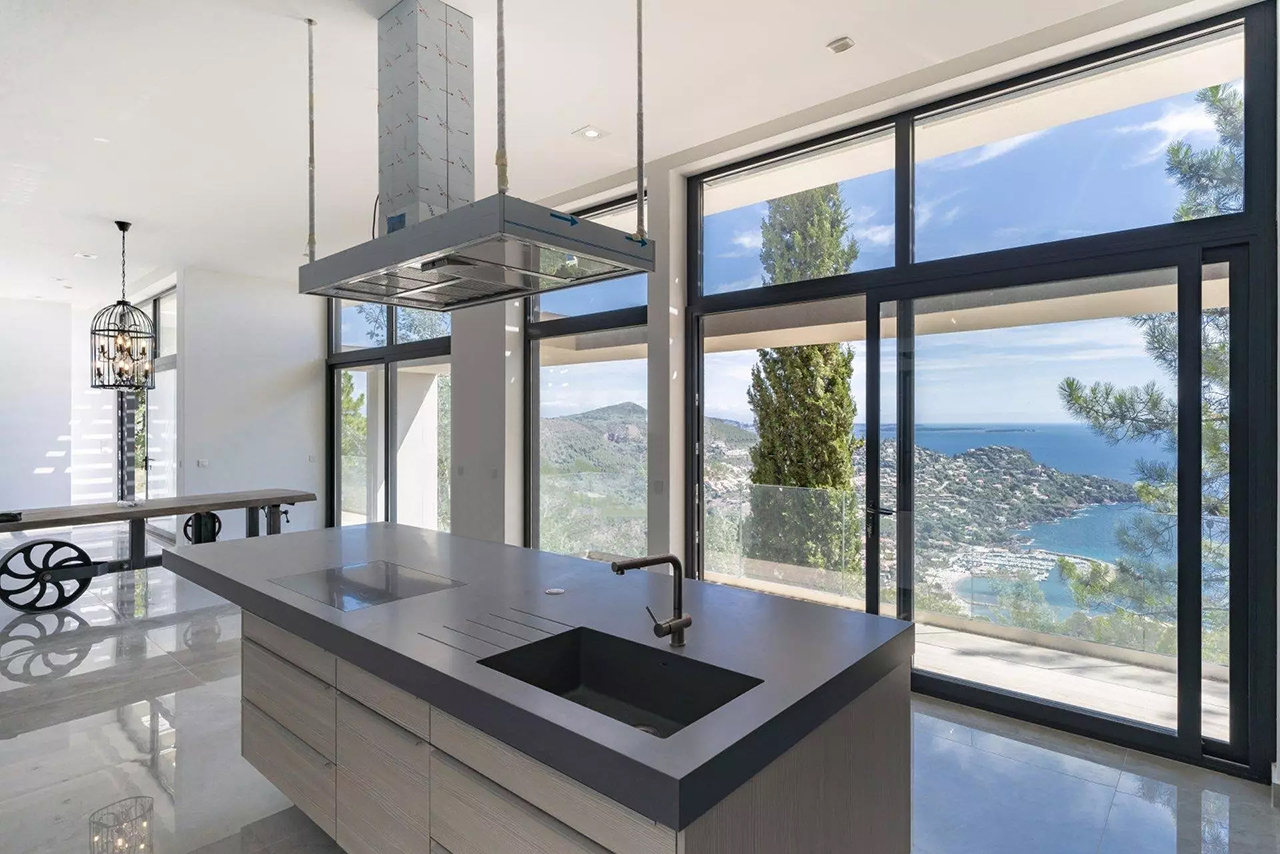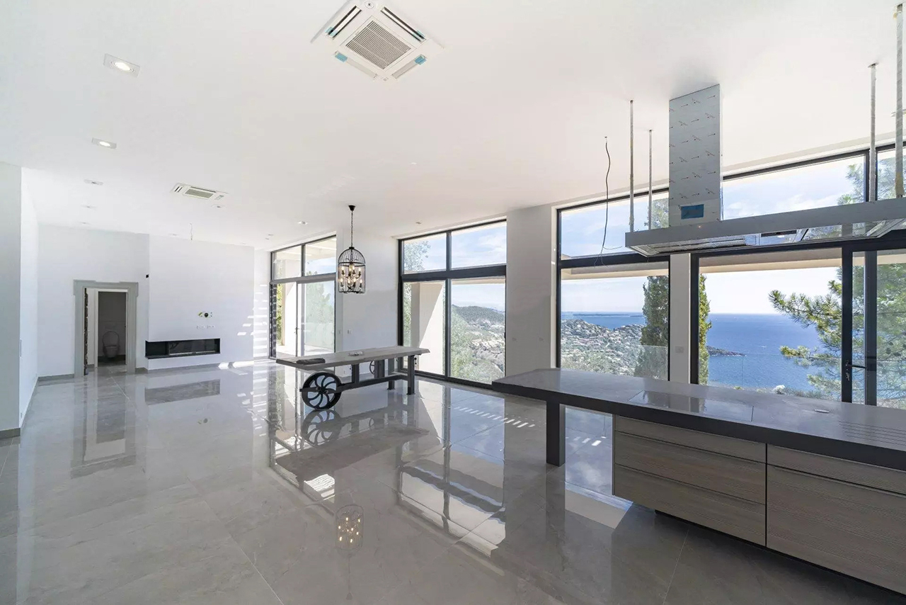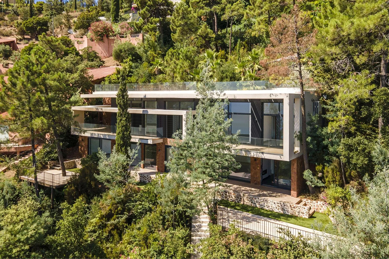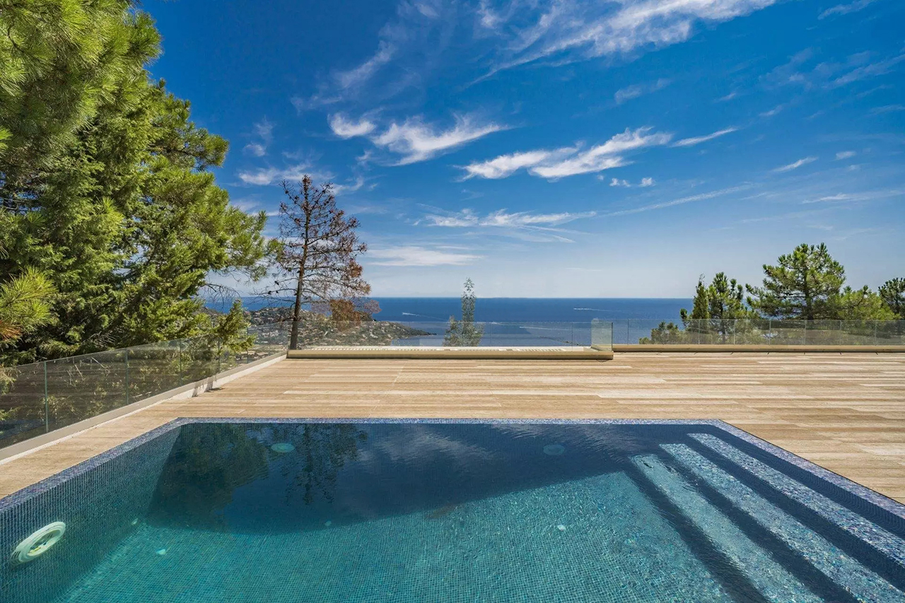 Cette nouvelle villa ultra-moderne est située en position dominante sur la colline de Miramar. Il offre une magnifique vue panoramique sur toute la Baie de Cannes et l'Estérel.