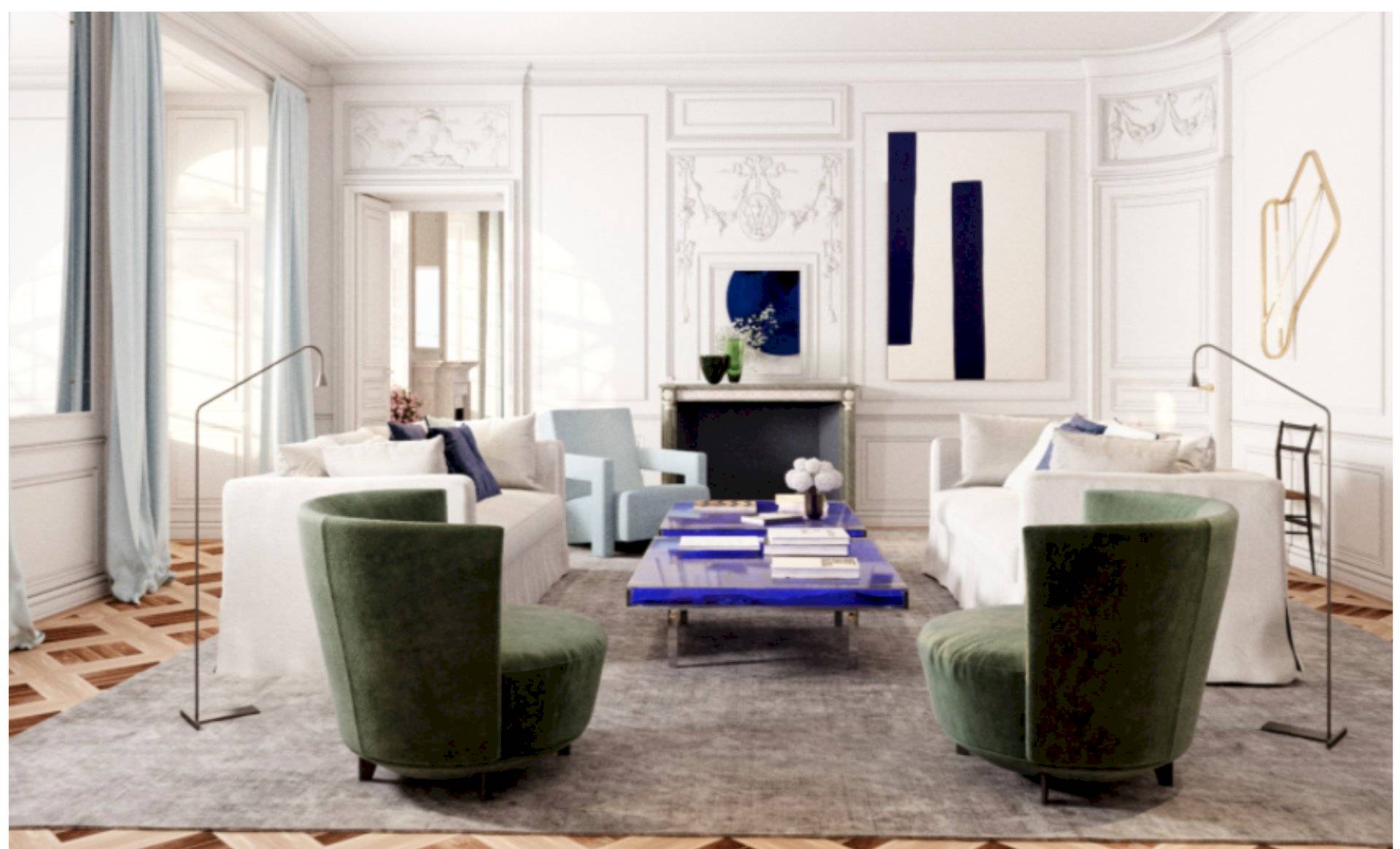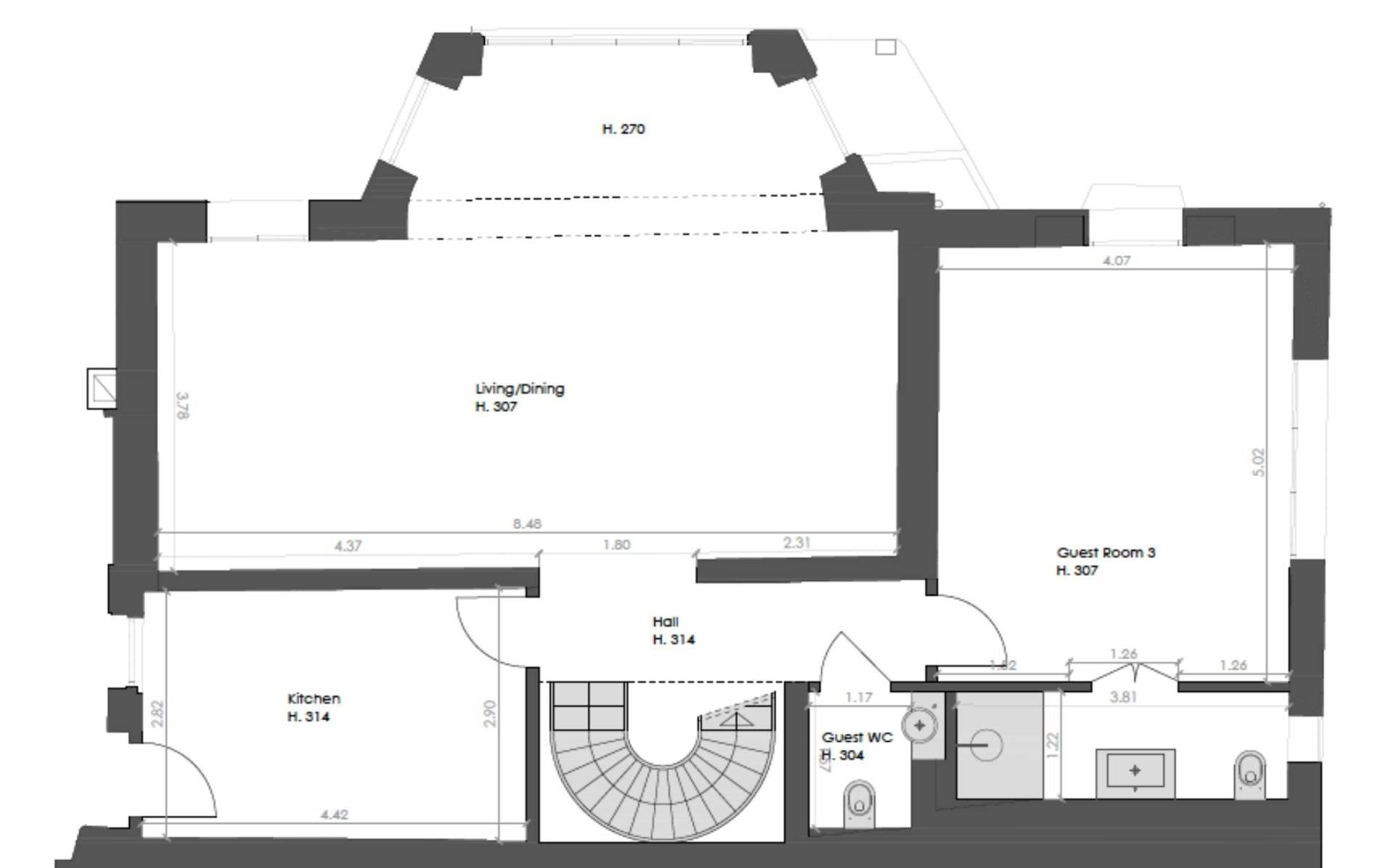 Rez-de-chaussée : salon et salle à manger, cuisine, 1 chambre avec bain/douche, dressing.