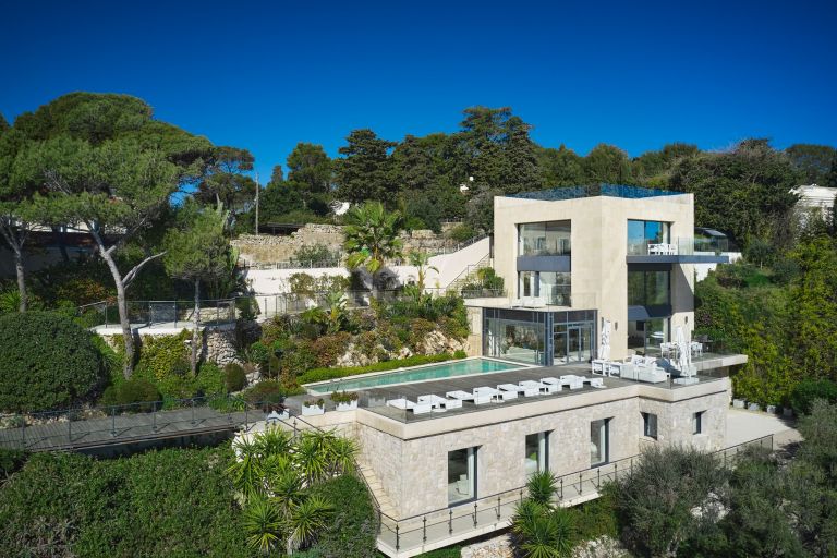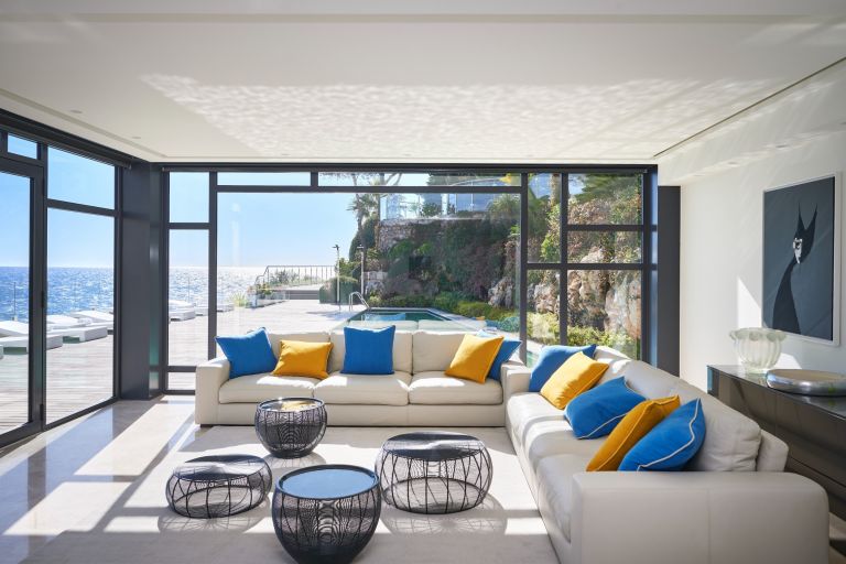 Cette villa exceptionnelle et ultramoderne en bord de mer bénéficie d'un emplacement unique, à proximité du Grand Hôtel 4 Saisons et du phare de Saint-Jean-Cap-Ferrat.