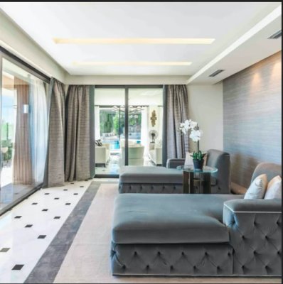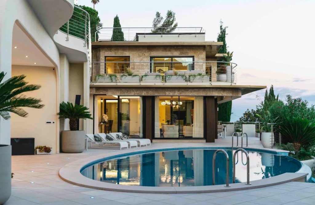 La villa de 648 m² a été entièrement rénovée en 2022 avec des matériaux et des finitions de haute qualité.