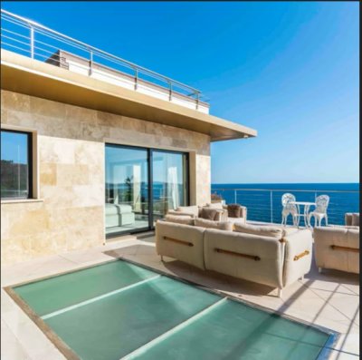 Cette villa moderne avec vue mer spectaculaire est située dans le quartier résidentiel de Cap d'Ail et à seulement quelques mètres de la mer, à proximité de la Principauté de Monaco, sur un terrain de 2690 m² entouré d'un charmant jardin avec de nombreuses arbres, belles plantes et fleurs.