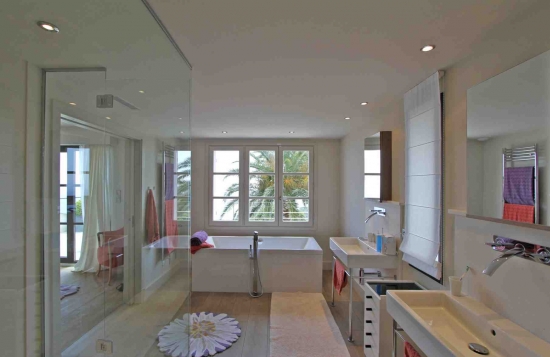 Belle villa Art nouveau de 325 m2 et avec salle de gym 45 m2. La villa construite sur un terrain plat de 2000 m2 avec belle oliveraie et piscine. Vue imprenable sur la mer. La villa est orientée au sud.