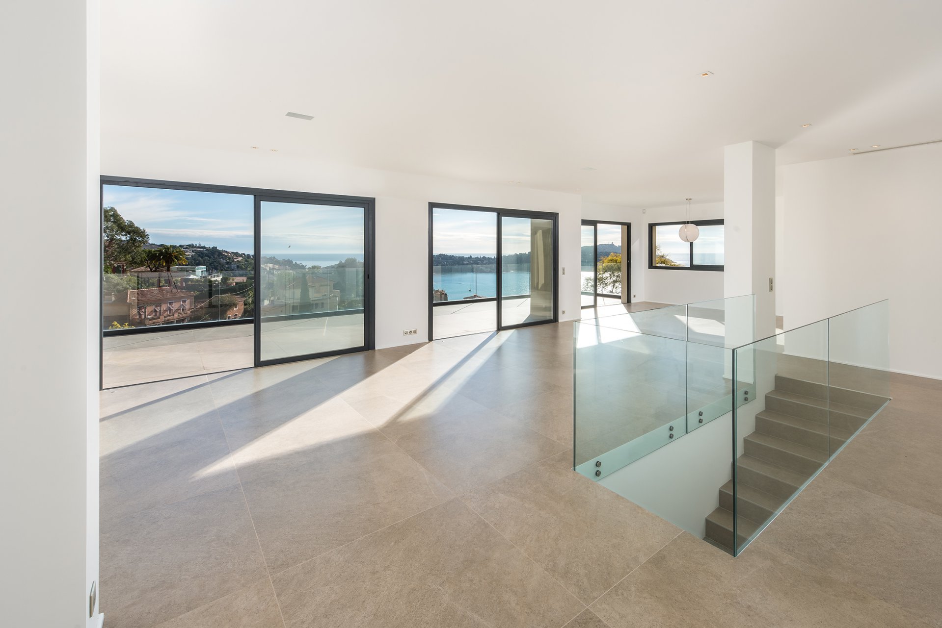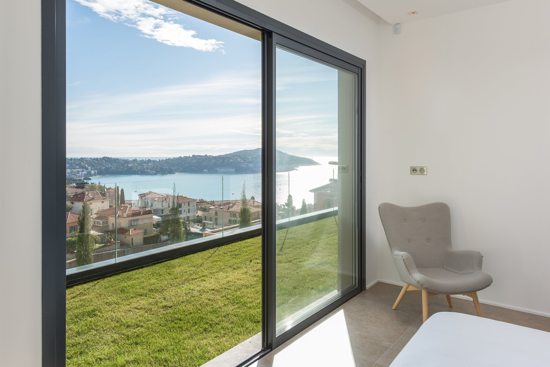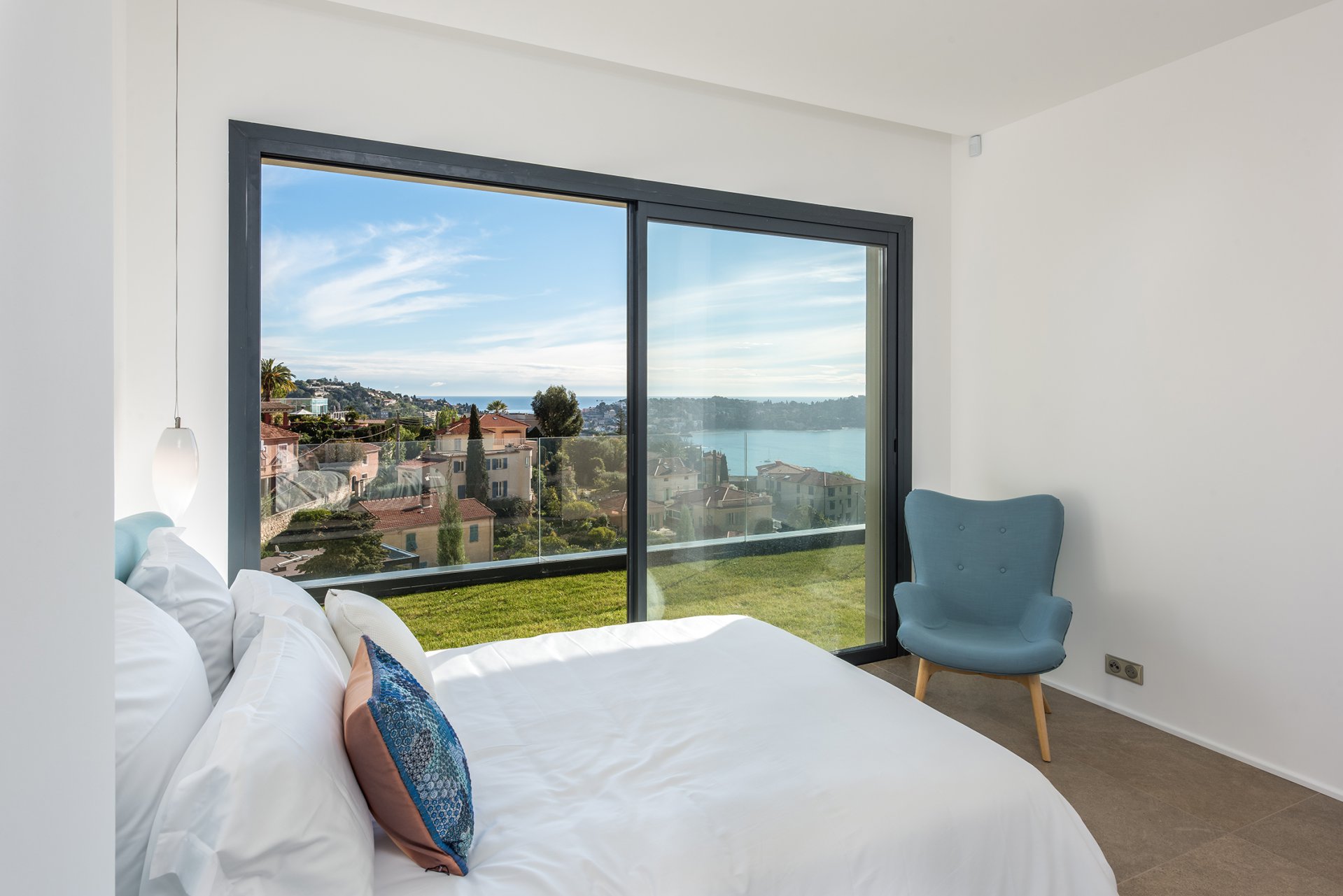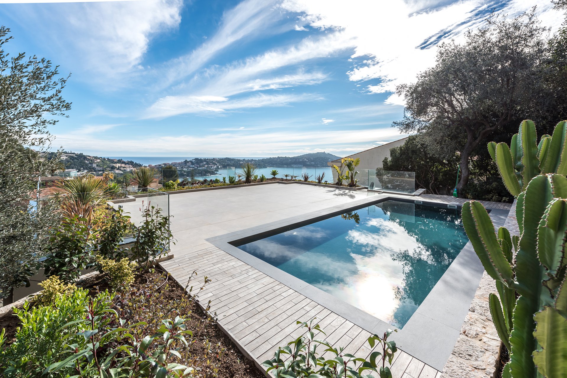 Villa contemporaine entièrement rénovée offrant une vue exceptionnelle sur la péninsule du Cap Ferrat et la baie de Villefranche. Grand espace de réception avec cuisine ouverte d'env. 50 m² ouvrant sur terrasse avec vue magnifique sur la mer, 3 chambres avec salle de bains attenante donnant sur un petit jardin. Sur le toit, piscine avec terrasse d'env. 50 m². Garage pour 3 voitures. À distance de marche de toutes les commodités et de la mer.
