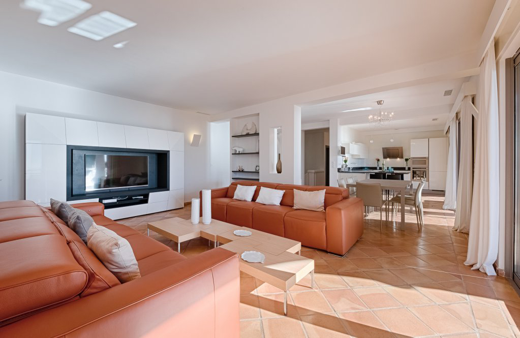 D’une superficie d’environ 250 m2, la villa dispose de volumes généreux, avec 3 suites et une salle dédiée au cinéma pouvant faire office de 4ème chambre si nécessaire.