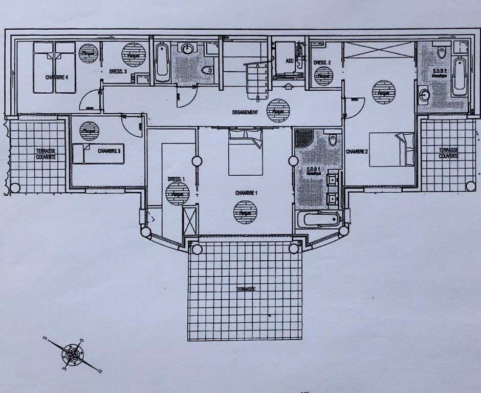 La villa, desservie par un ascenseur, se compose d'un spacieux séjour avec une cuisine américaine équipée, de 4 chambres avec une salle de bains en suite et d'un dressing.