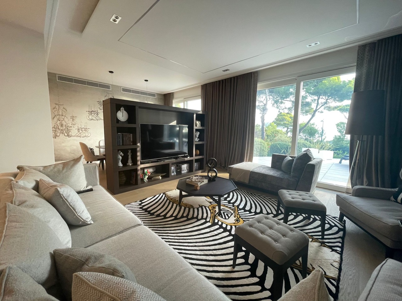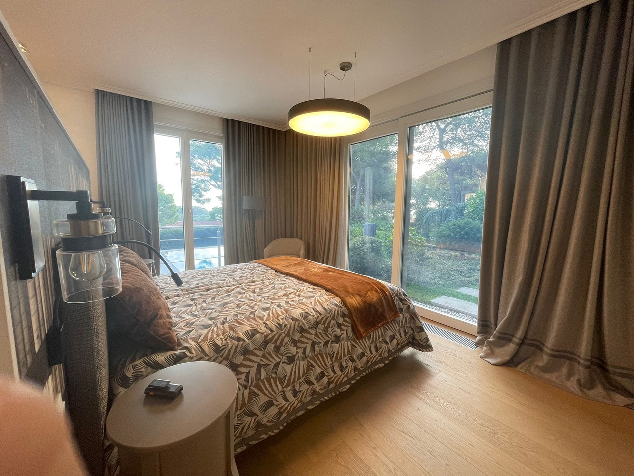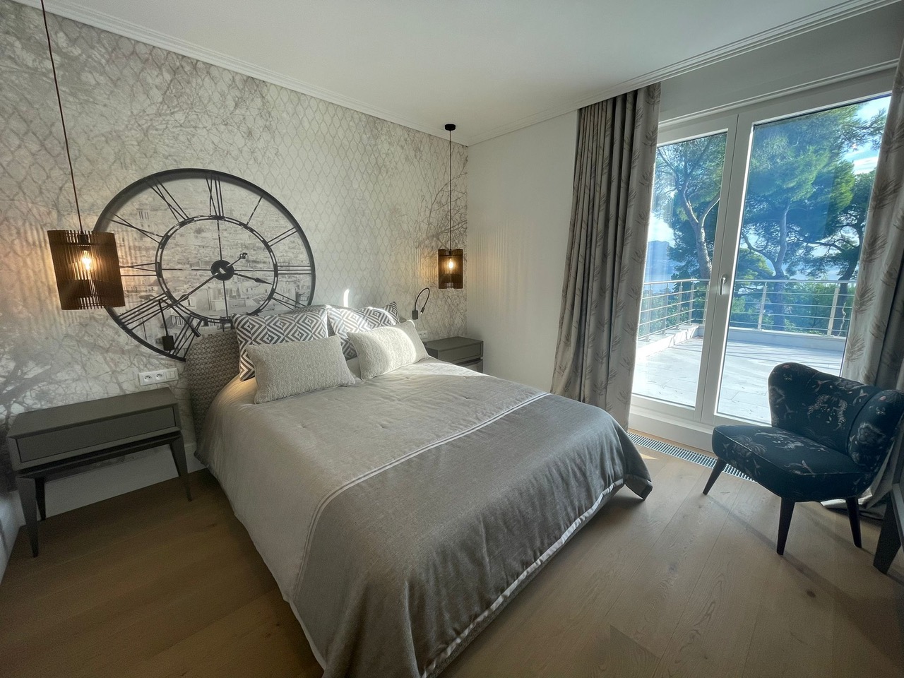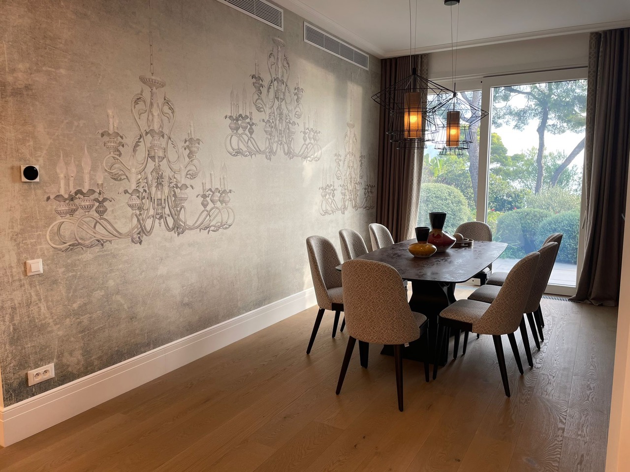 La surface habitable de la maison est de 340 m2, 4 chambres principales avec leurs propres douches et dressings, un appartement pour le personnel, une salle de sport et une buanderie.