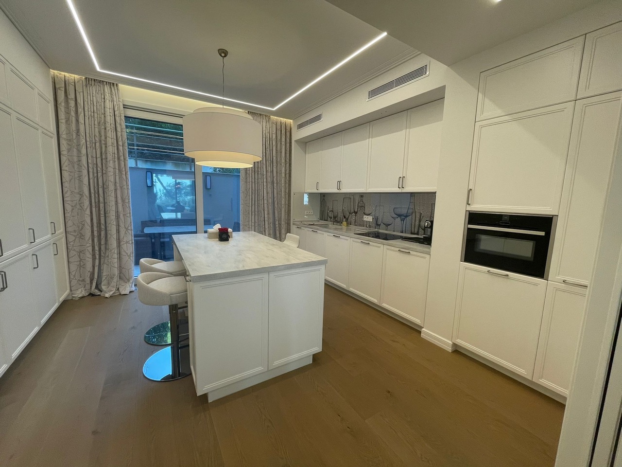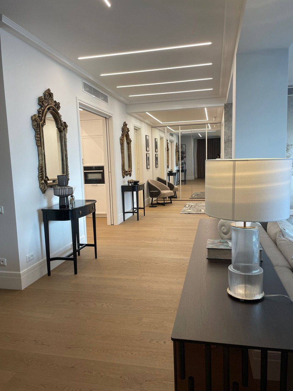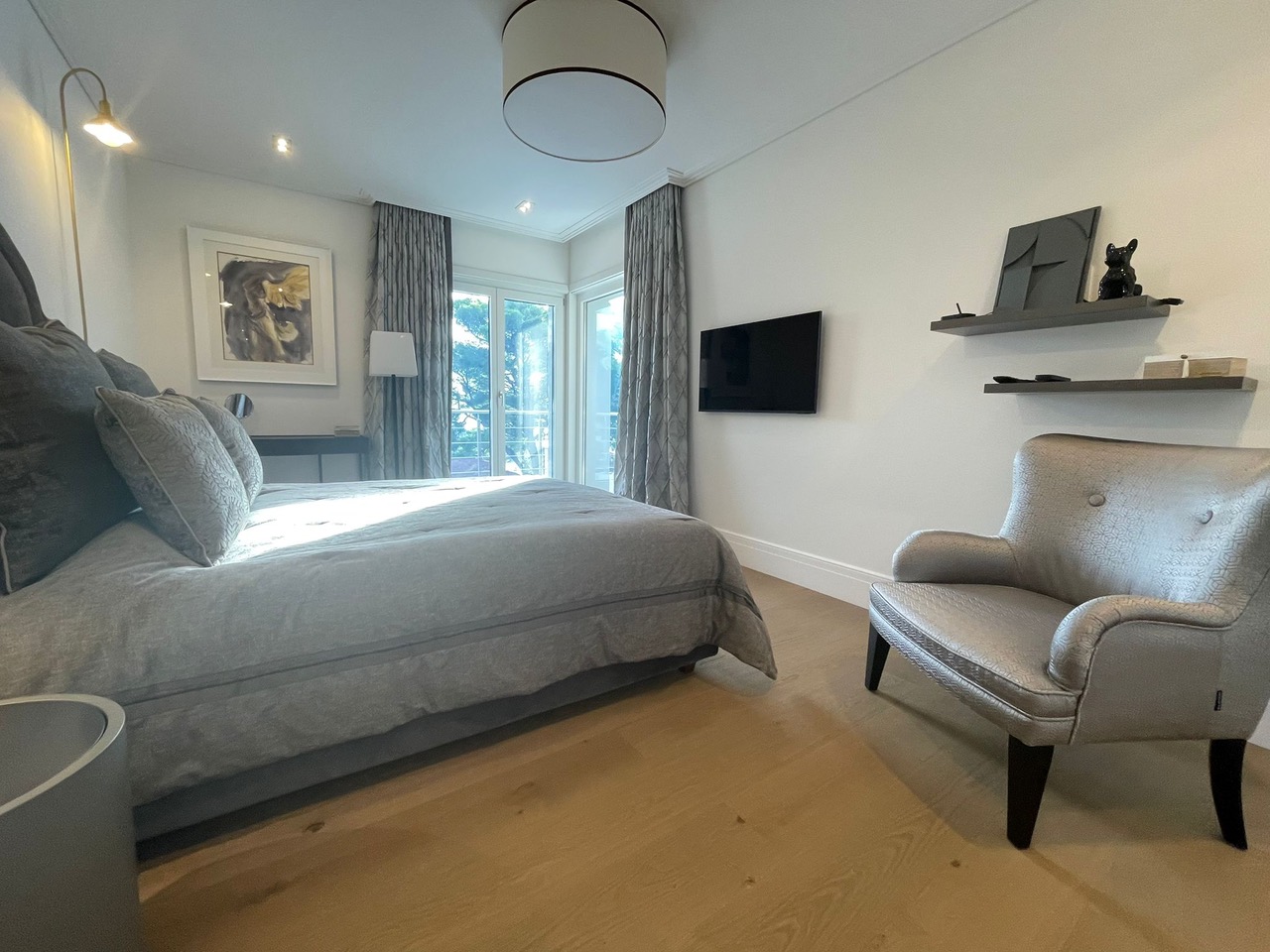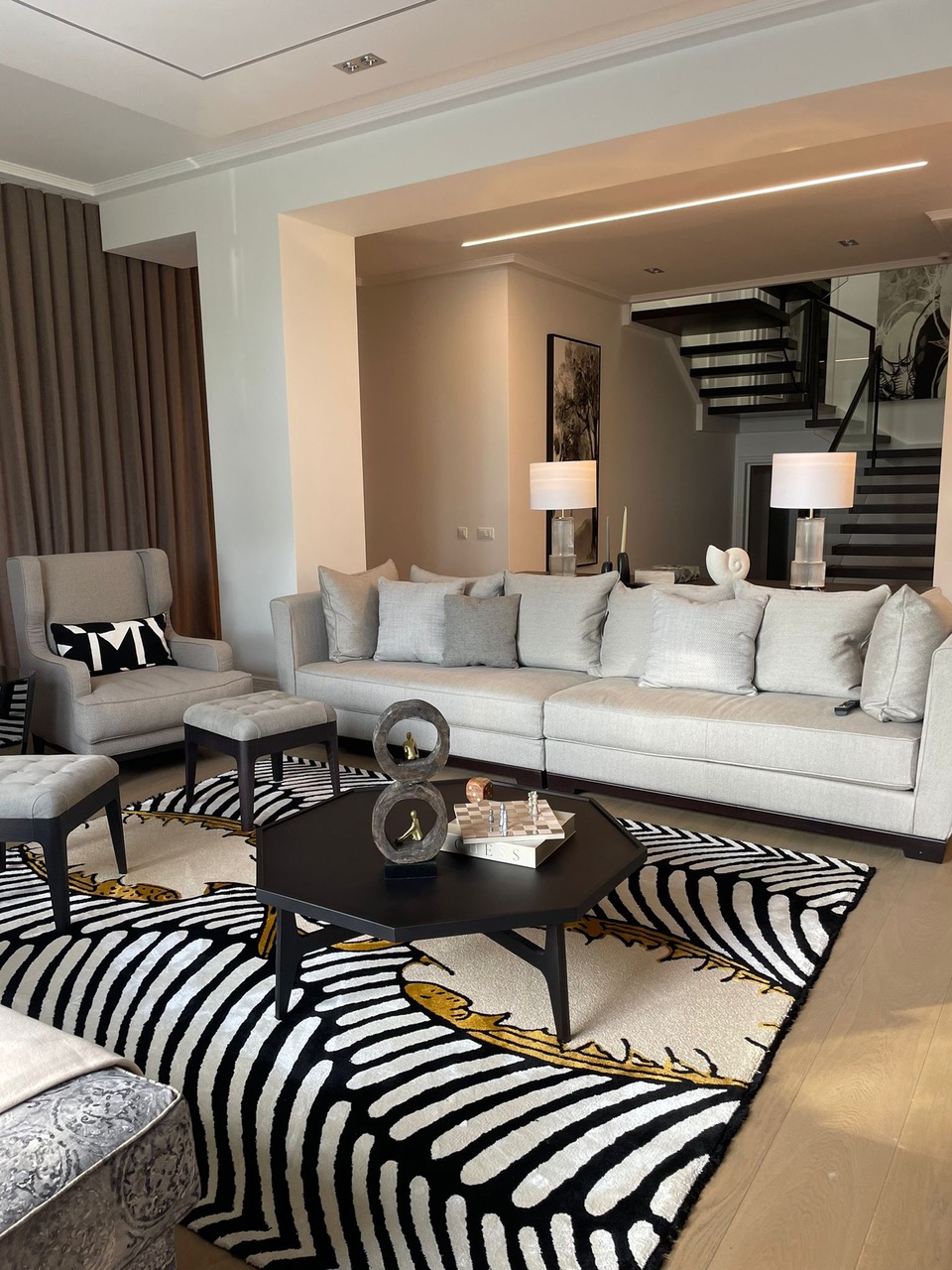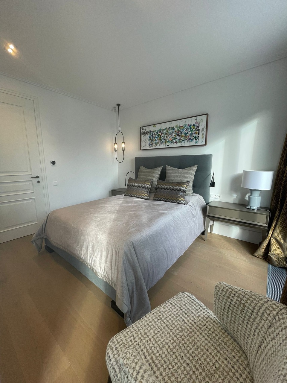 La surface habitable de la maison est de 340 m2, 4 chambres principales avec leurs propres douches et dressings, un appartement pour le personnel, une salle de sport et une buanderie.