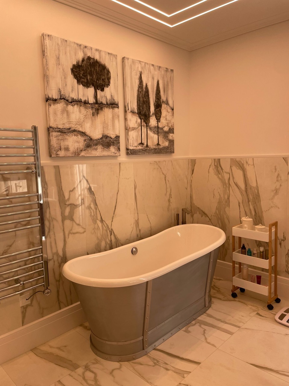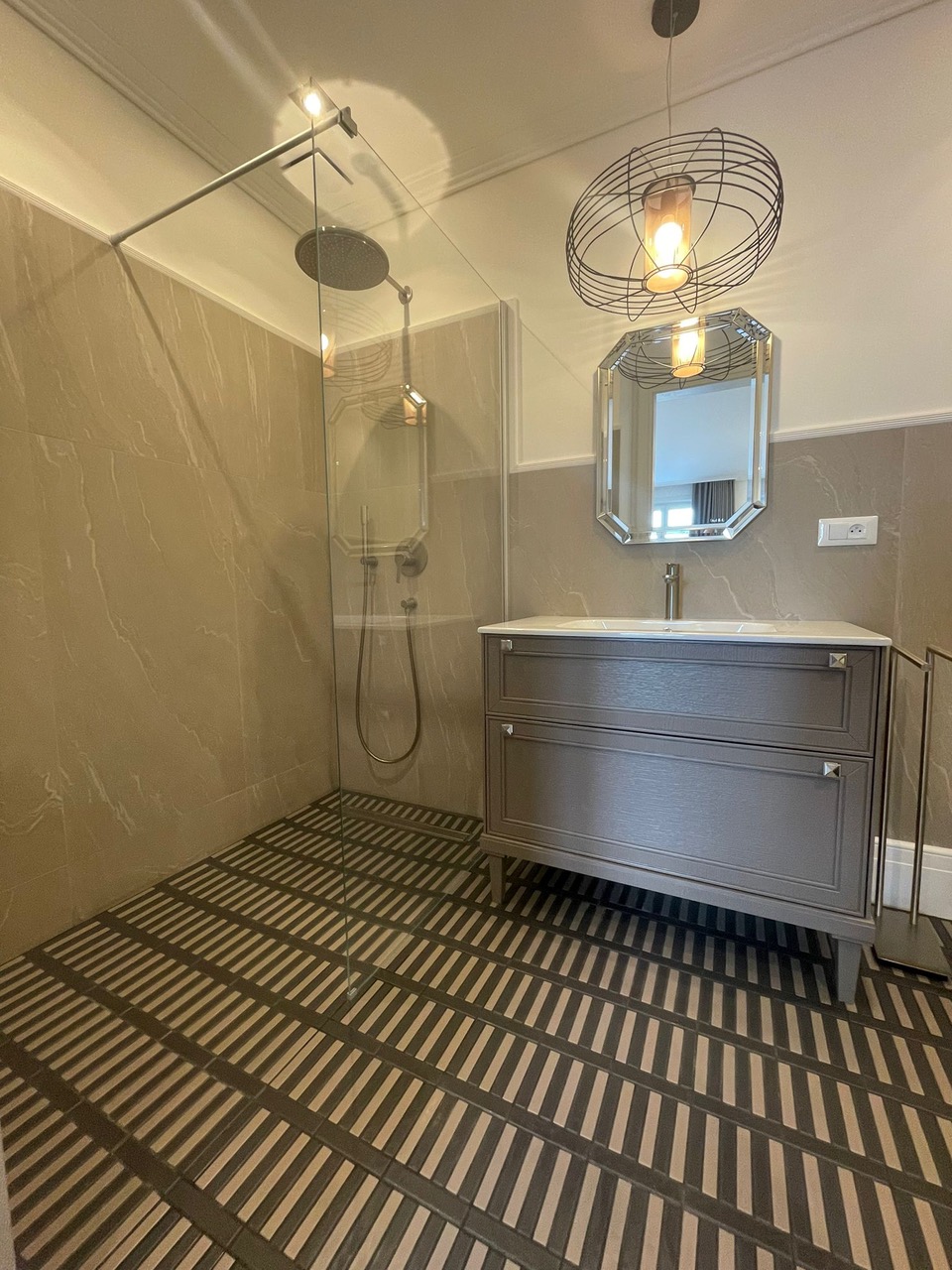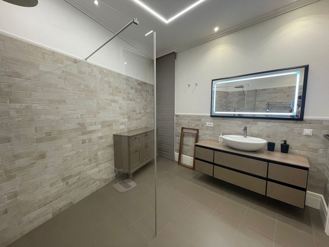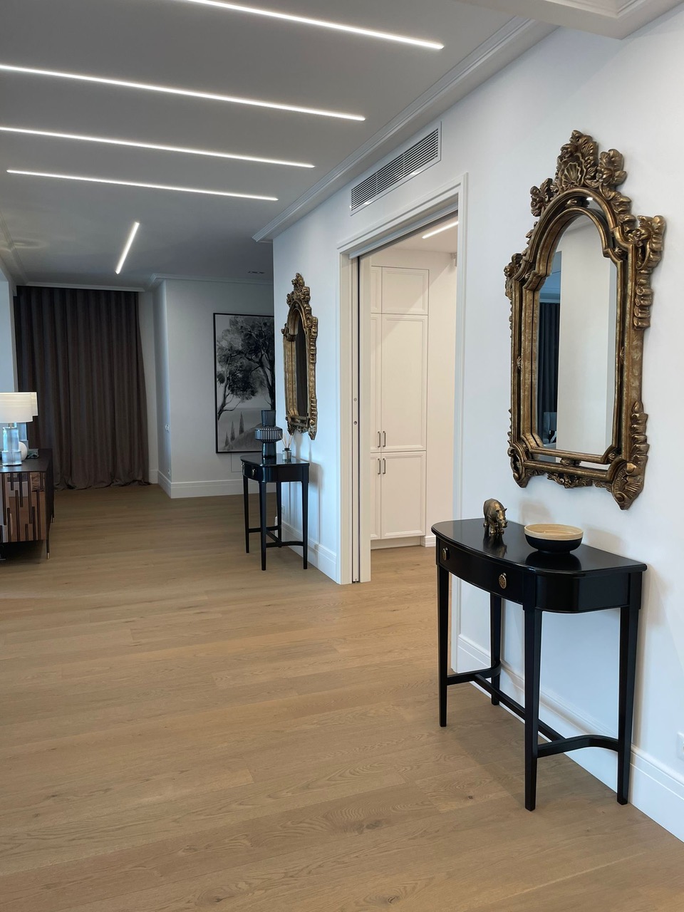 La surface habitable de la maison est de 340 m2, 4 chambres principales avec leurs propres douches et dressings, un appartement pour le personnel, une salle de sport et une buanderie.