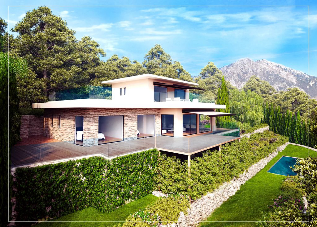 Au calme absolu et en position dominante, avec vue mer magique du Cap Martin à Menton, magnifique villa moderne neuve de 200 m² avec piscine, composée d'un grand séjour avec cuisine semi-séparée, 4 chambres dont deux principales, nombreuses terrasses et parking.