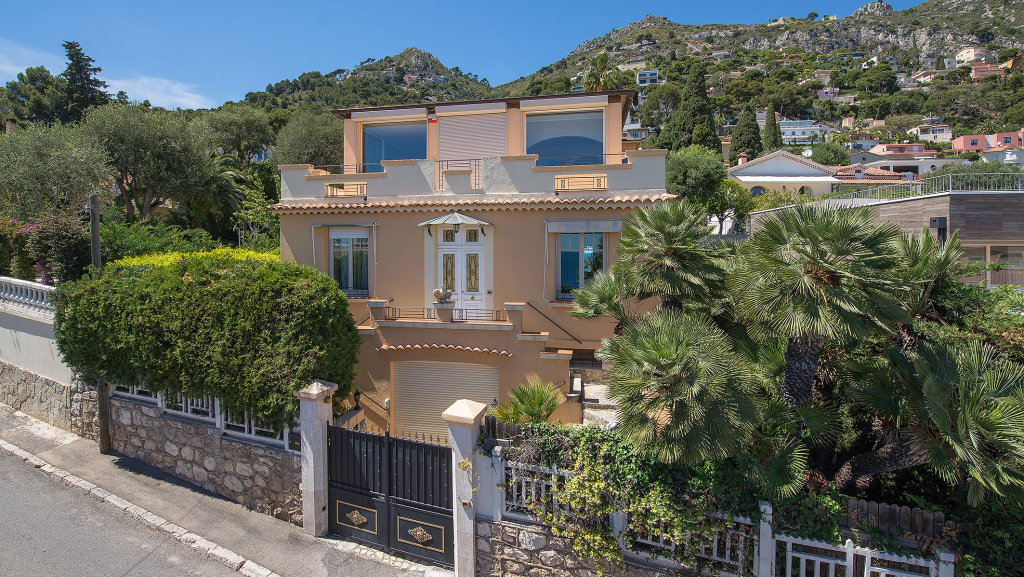 Eze-sur-Mer - belle villa en parfait état offrant la vue mer et la proximité à pieds des plages, 2 chambres, appartement indépendant pour le personnel, possibilité piscine.