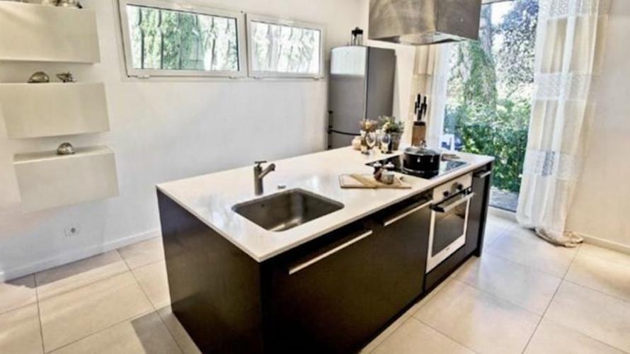 La surface habitable de la maison est de 230m2, avec une cuisine ouverte à l'américaine avec un coin repas et salon au rez-de-chaussée, et une chambre d'amis. Au deuxième étage, il y a 3 chambres avec leurs propres salles de bains, dont la chambre principale dispose d'un dressing et d'une terrasse.