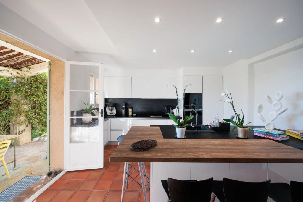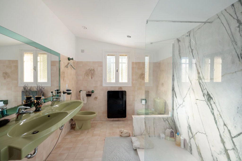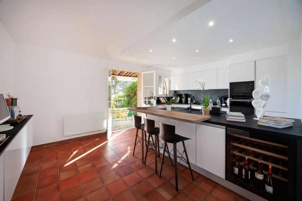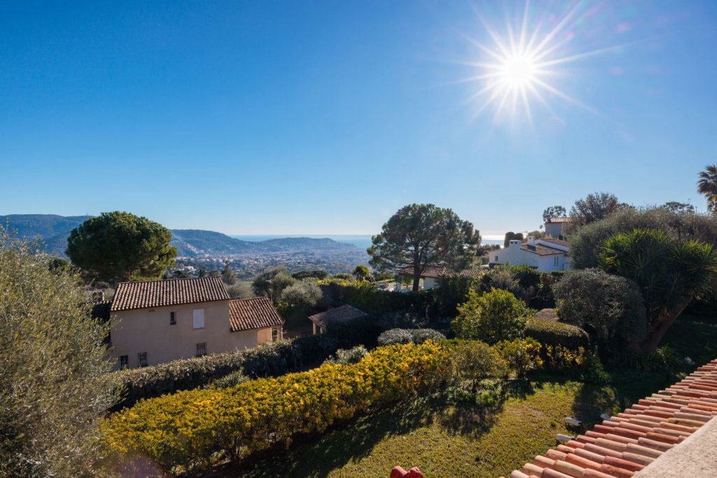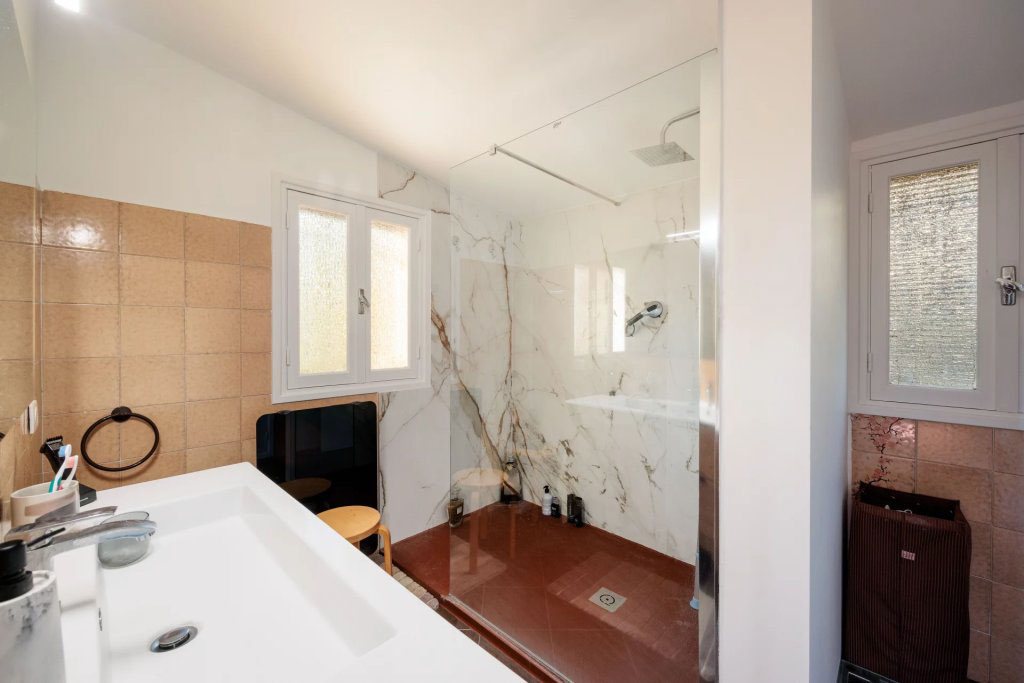 Construite dans les années 1980, cette propriété offre environ 230 m² habitables sur deux niveaux. Au rez-de-jardin, le grand séjour lumineux s'ouvre sur une terrasse ensoleillée, tout comme la cuisine moderne entièrement équipée et la chambre principale avec salle de bain en suite. A l'étage, trois autres chambres, dont une également en suite, complètent l'espace nuit.