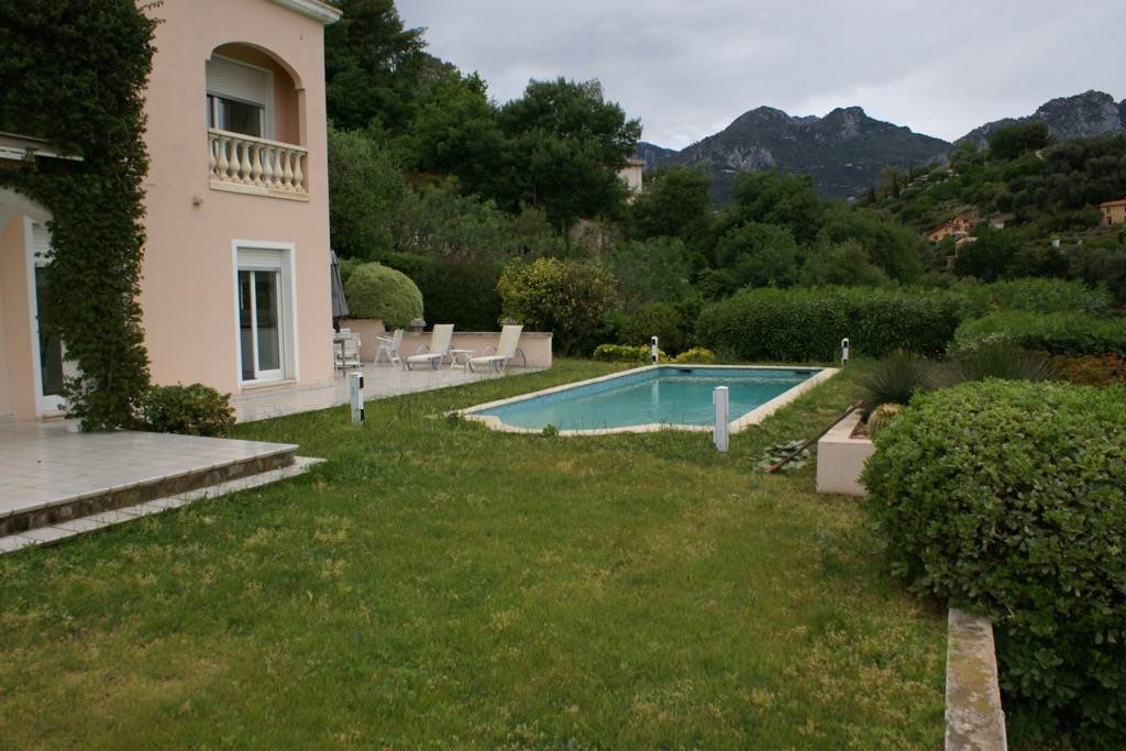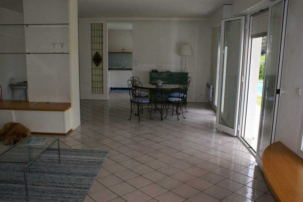 Grande maison jumelée sur deux niveaux de style provençal, située au calme dans un domaine privé composé de six villas. La maison, en bon état général, est composée d'entrée, spacieux séjour, cuisine indépendante équipée, cinq chambres, une salle de bains et deux salles d'eau. La maison est très lumineuse et sans vis-à-vis, exposée est et avec une belle vue mer panoramique. La villa offre 200 m² environ de terrasses, 600 m² environ de terrain, une piscine privée, un grand garage, deux emplacements de parking à l'extérieur et une cave.