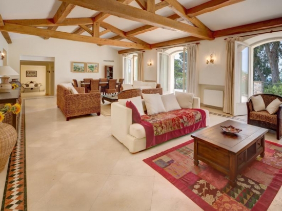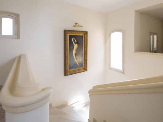 La maison principale dispose d'un vaste hall d' entrée, salon, salle à manger, salon, grande cuisine entièrement équipée, 5 chambres avec salles de bains attenantes. Depuis les chambres il y a des accesses à une grande terrasse donnant sur le jardin, piscine et vue panoramique sur la mer.