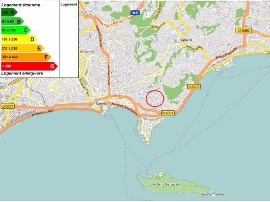 Magnifique vue sur la baie de Cannes, le Cap d' Antibes et les montagnes de l'Esterel.