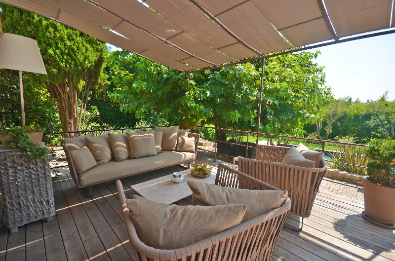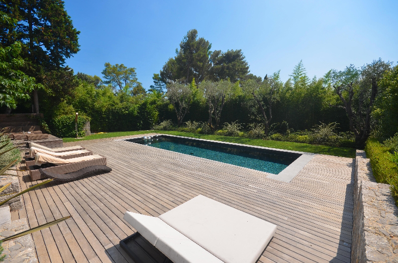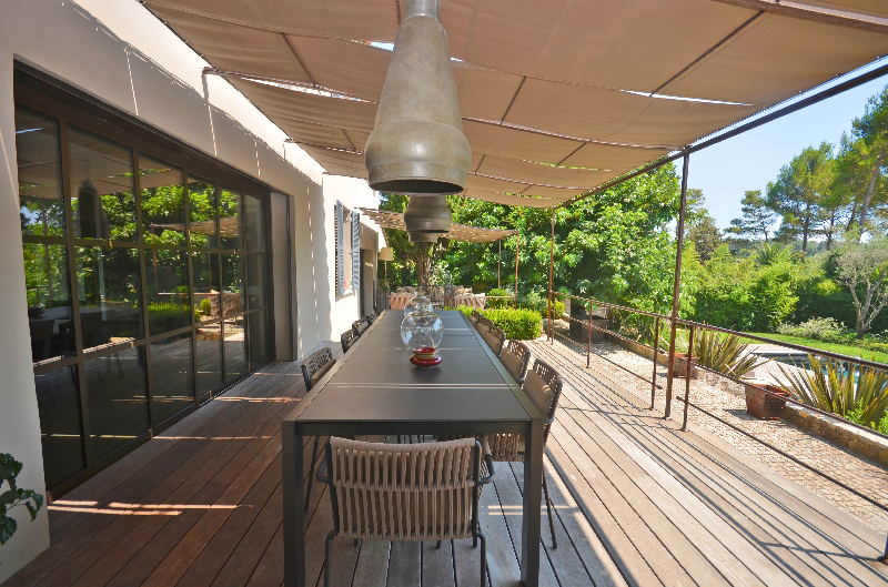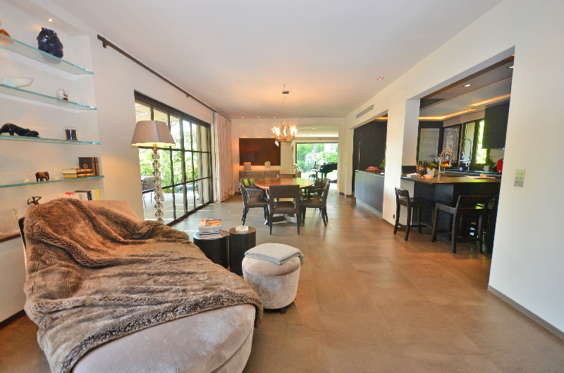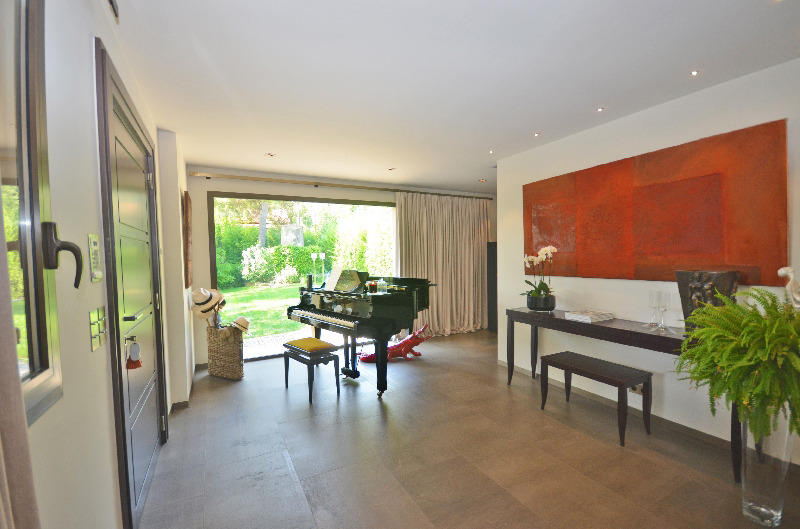 Mougins : domaine fermé, proche du golf et de la Mougins School, belle villa provençale exposée sud, offrant : hall d'entrée, vaste et lumineux séjour, salle à manger, cuisine américaine équipée, 4 chambres avec salles de bains. Jardin complanté de 1 700 m2 avec bel espace piscine.