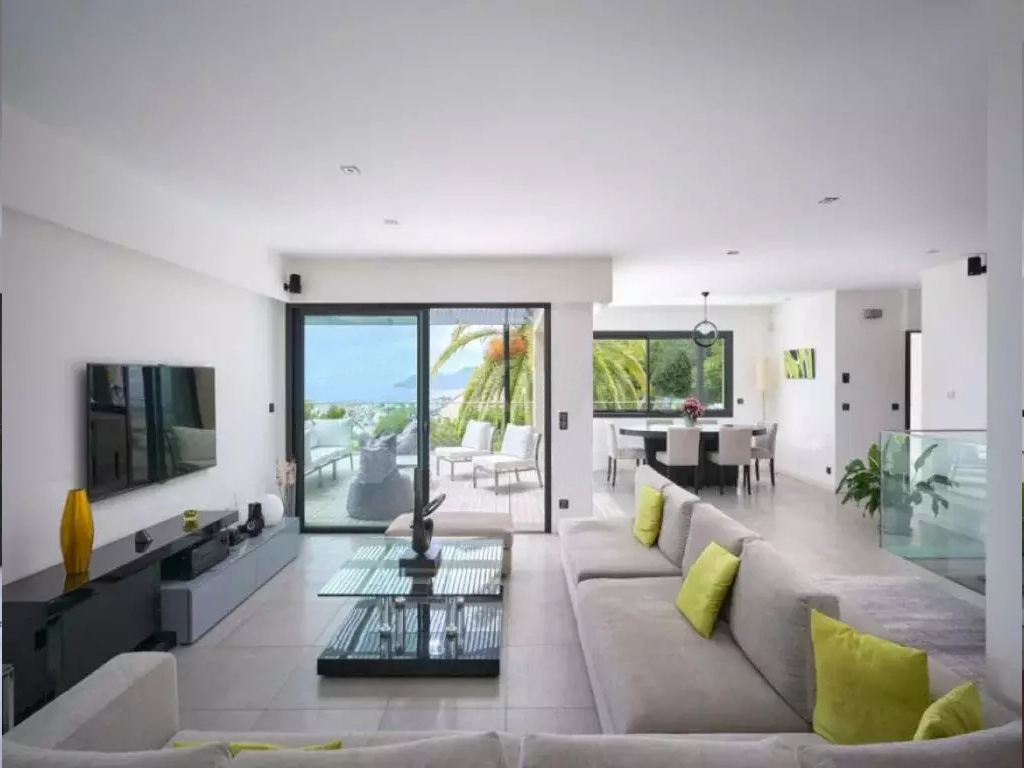 Magnifique villa moderne avec vue mer, située sur les hauteurs du Cannet, entièrement rénovée et dotée d'excellents équipements.