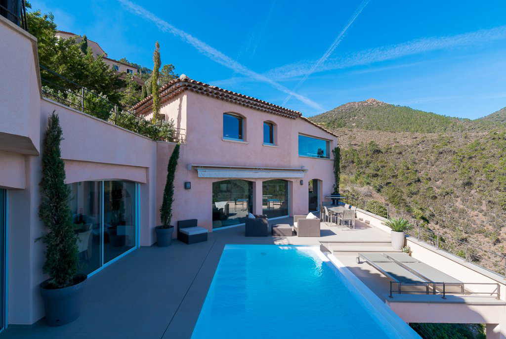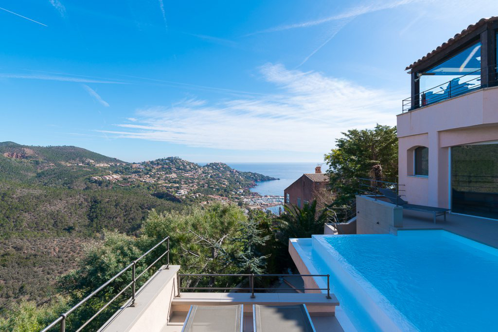 Panorama sur la nature et la mer absolument exceptionnel pour cette villa aux prestations modernes, nichée au cœur d'un domaine fermé résidentiel sur les hauteurs du Trayas.