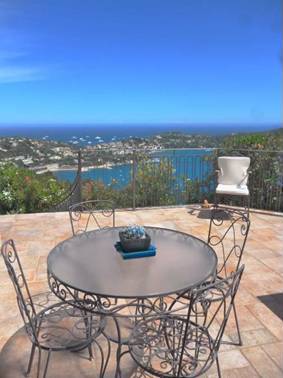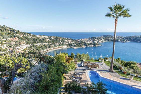 Просторные террасы из тика с шезлонгами вокруг панорамного бассейна, лаунж-зона (плетеная мебель), которая предлагает днем и вечером самые уникальные и фантастические виды на весь залив и Кап-Ферра.