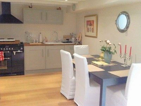 На нижнем уровне находится кухня/столовая со стиральной машиной, посудомоечной машиной, газовой плитой, американским холодильником с дистрибьютером льда и охладитель вин. Телевидение и DVD. Выход на закрытый внутренний дворик с барбекю, стол и стулья. Кондиционер. Wi-Fi.