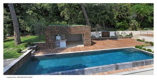 Красивый сад с летней кухней.