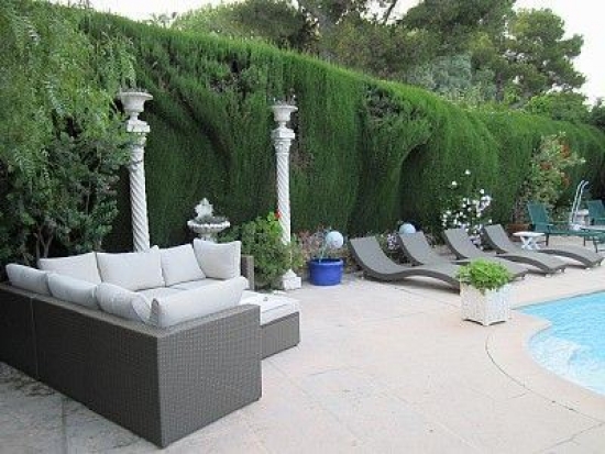 Владение площадью 401 м2, имеет жасминовый сад и зону отдыха, которая окружает сад с экзотическими пальмами, деревьями и бассейном длиной 15 метров. Сад включает в себя тенистую столовую на 8 персон, пространство для барбекю и шезлонги на 8 человек. Открытая кухня, гостиная и столовая также на 8 человек. Кондиционер для лета и камин для зимы. Мезонин со спальней, ванной комнатой и гардеробной. А также гостиная с двумя спальнями, ванной комнатой и гардеробной. Отдельное помещение для сушилки, дополнительного холодильника и морозильной камеры.