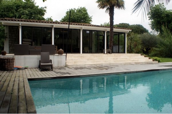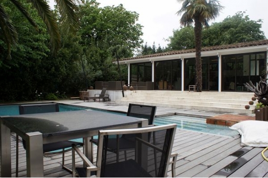Прекрасная терраса около дома и бассейн с подогревом.