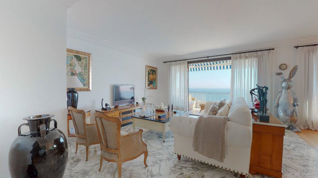 Всего в 7 минутах от Монако, в прибрежной резиденции, красивая квартира с высококачественными услугами, площадью около 90 м2, с двойной террасой 40 м2.