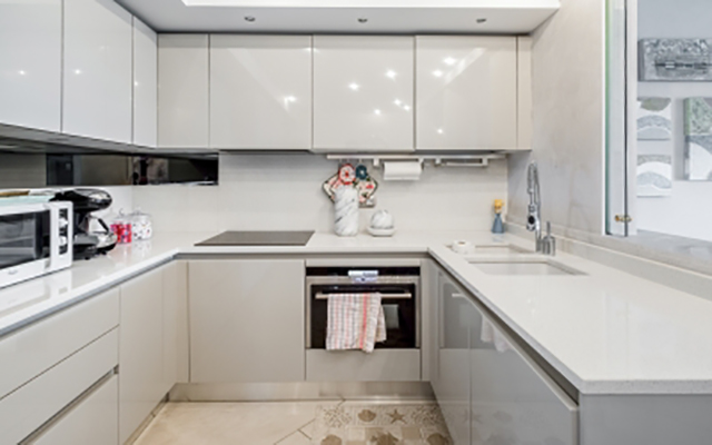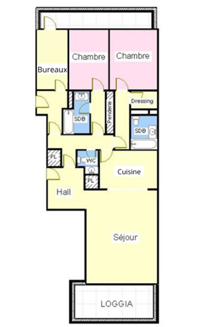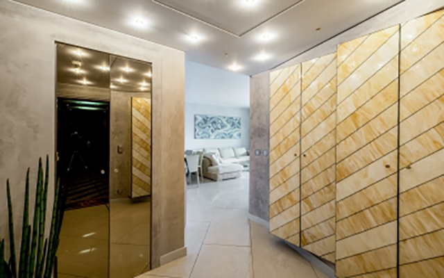 Общая площадь 159 м2, состоит из: прихожая, гостиная с оборудованной кухней и выходом на террасу, главная спальня с ванной комнатой и гардеробной, спальня с ванной комнатой и шкафами, спальня/офис сзади, гостевой туалет.