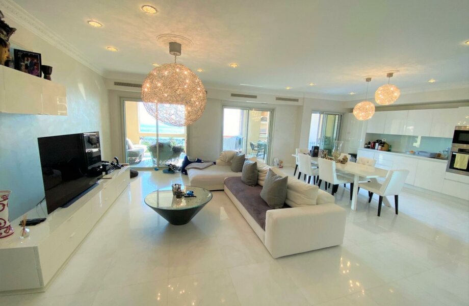Эта просторная 3-х комнатная квартира общей площадью 177 кв.м., расположенная в 14-ти этажной резиденции Seaside Plaza с бассейном, была полностью отремонтирована с использованием высококачественных материалов и красиво меблирована в современном стиле. На верхнем этаже с ее широких террас открывается великолепный вид на море и Фонвьей.