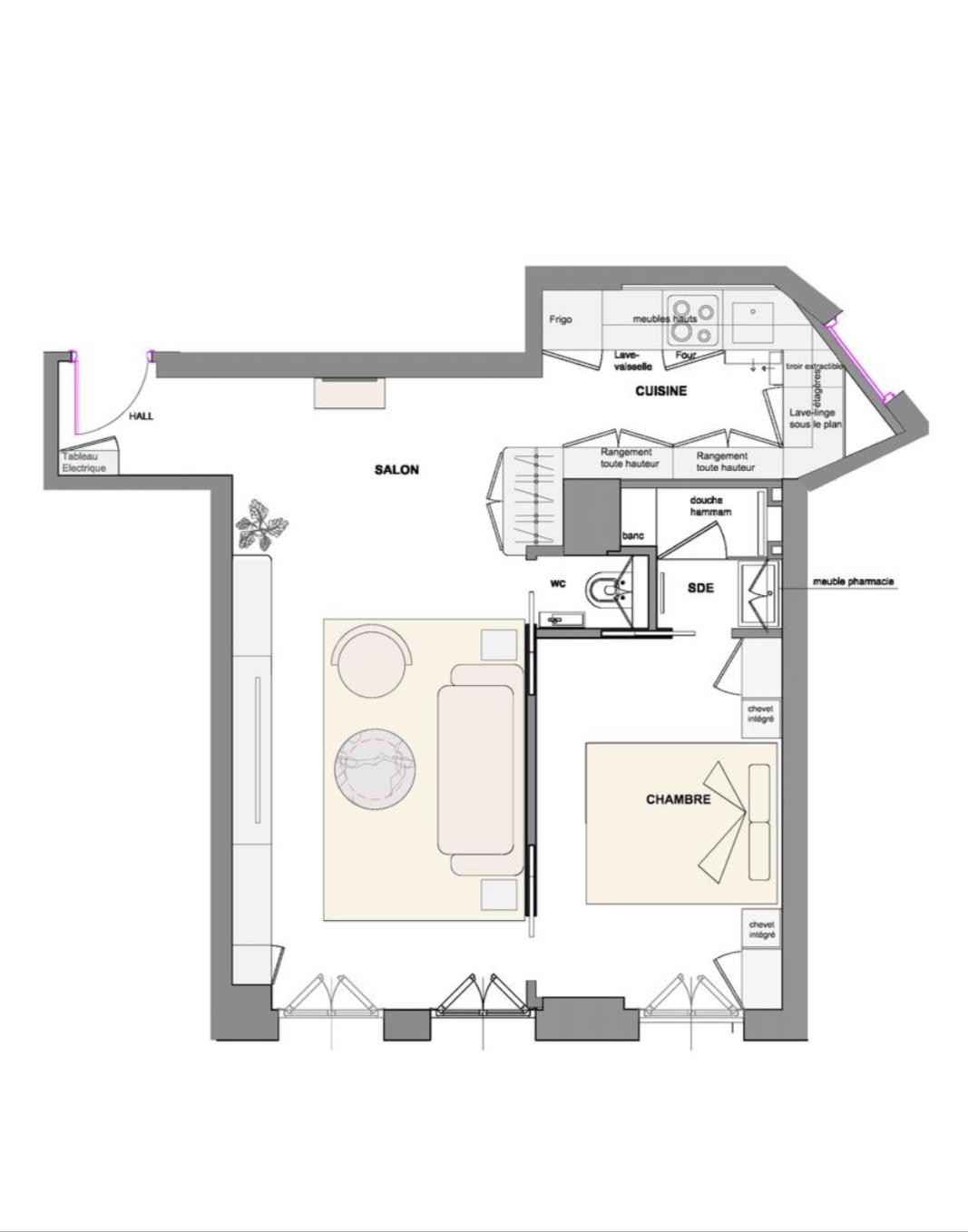 Полностью кондиционированная квартира состоит: просторная гостиная, красивая большая спальня с превосходной ванной комнатой с душем/хаммамом, гостевой туалет и множество мест для хранения вещей.