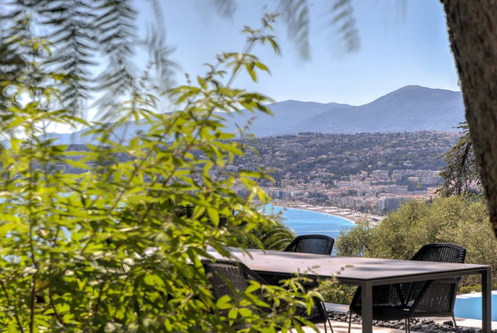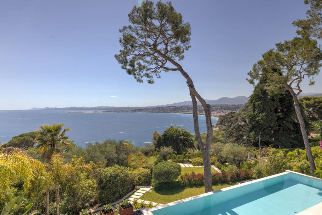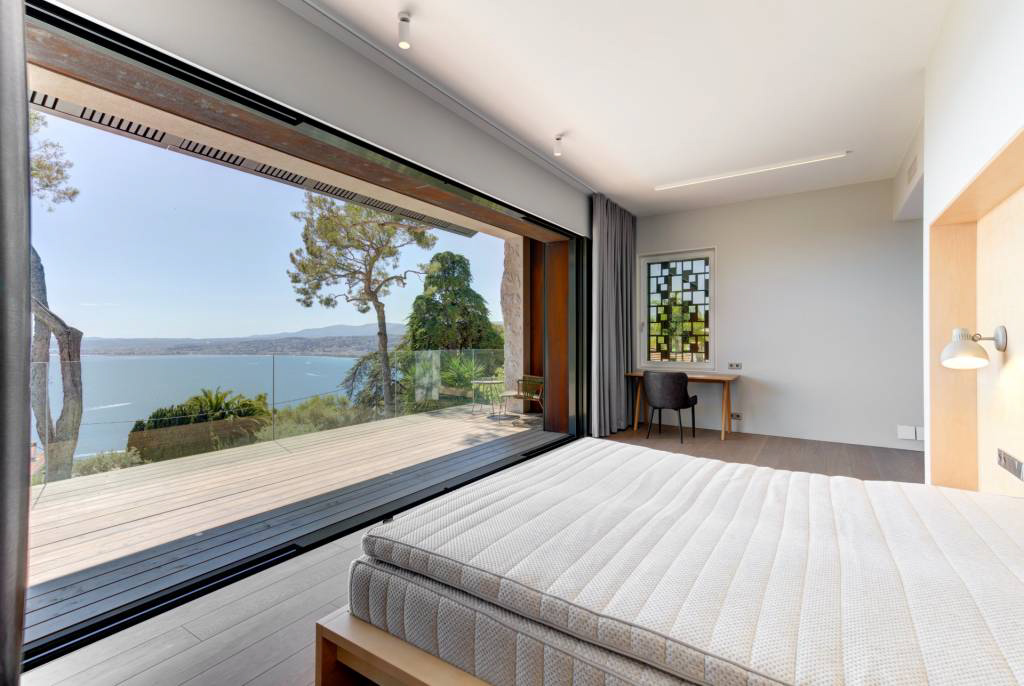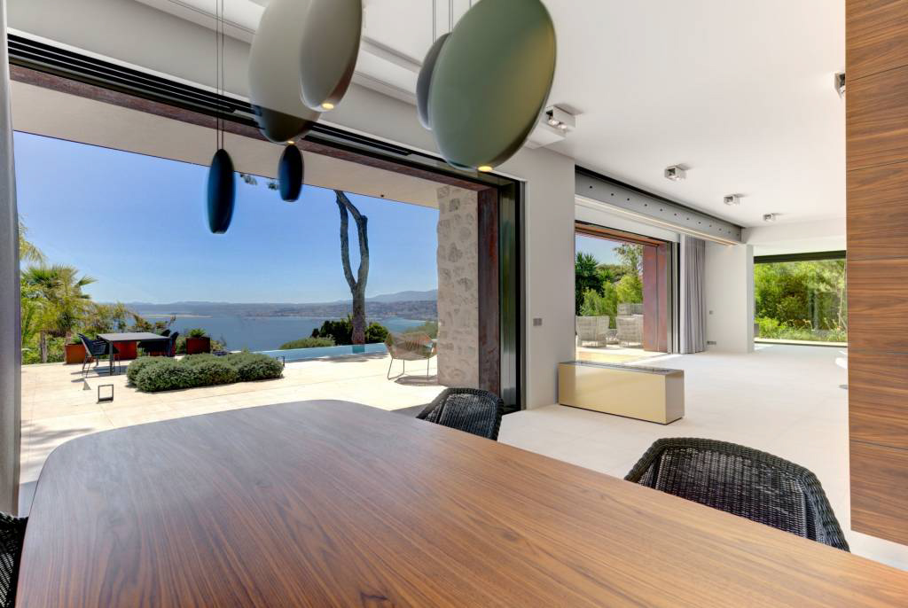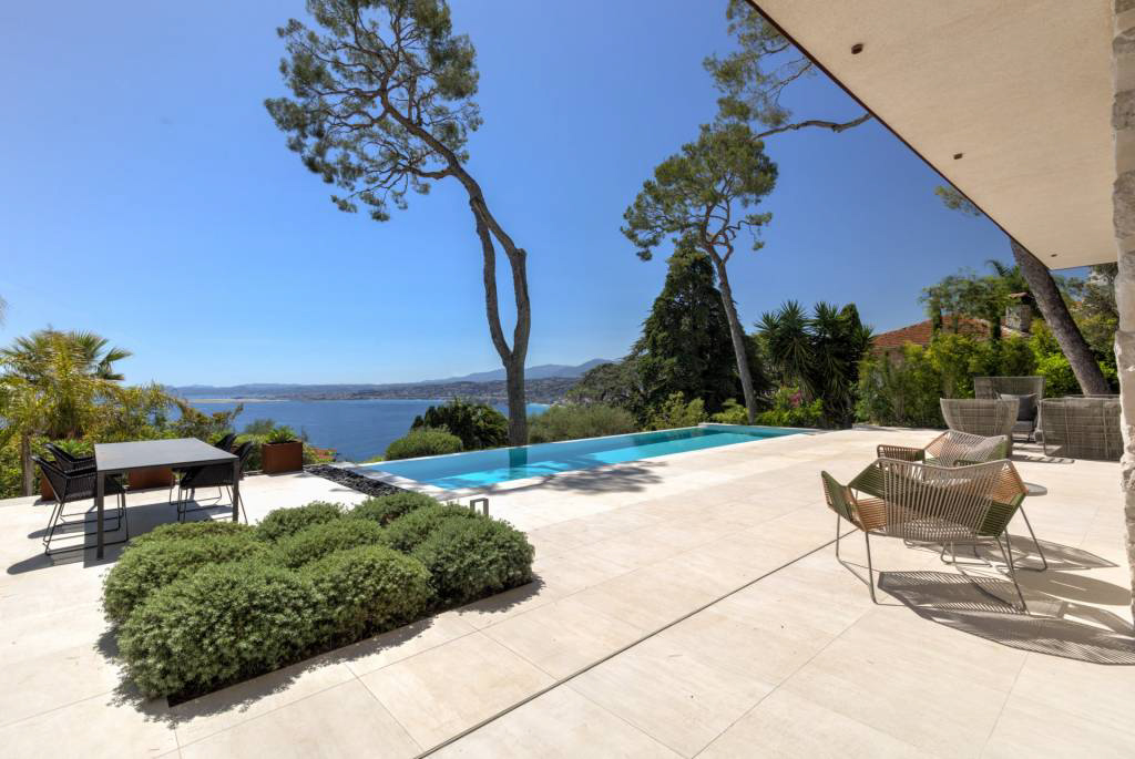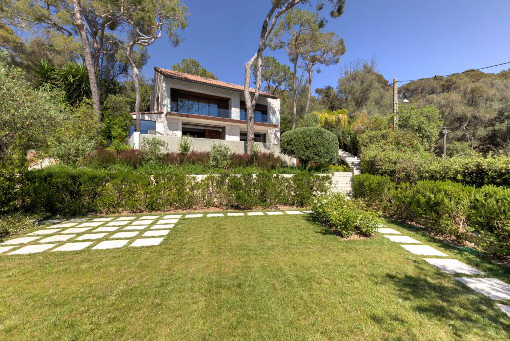 Великолепная каменная вилла, перепроектированная в ультрасовременном скандинавском стиле и расположенная на краю леса национального парка Мон-Борон с видом на залив в сторону гор Кап д'Антиб и Эстель.