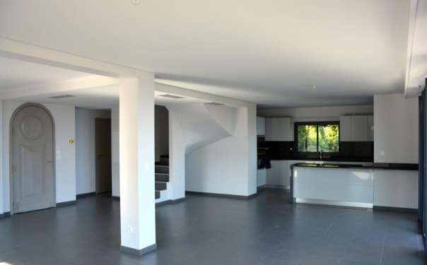 Дом расположен на двух этажах и включает в себя: на нижнем этаже гостиная с кухней, выходящей на две террасы с панорамным видом на залив Вильфранш, две отдельные спальни; на первом этаже: главная спальня с ванной комнатой, гардеробной и террасой с панорамным видом. На первом этаже также находятся две спальни с ванной комнатой и отдельным туалетом.