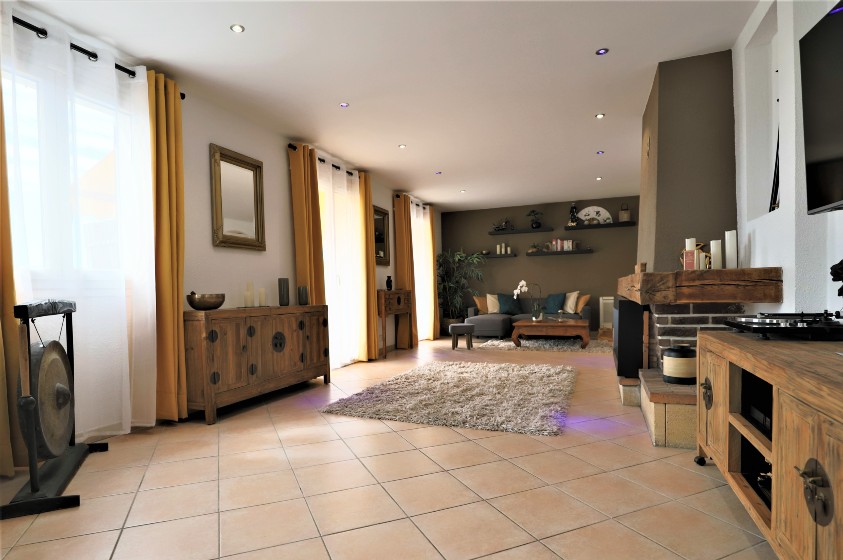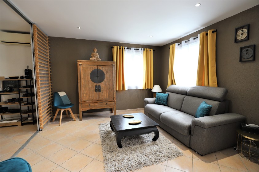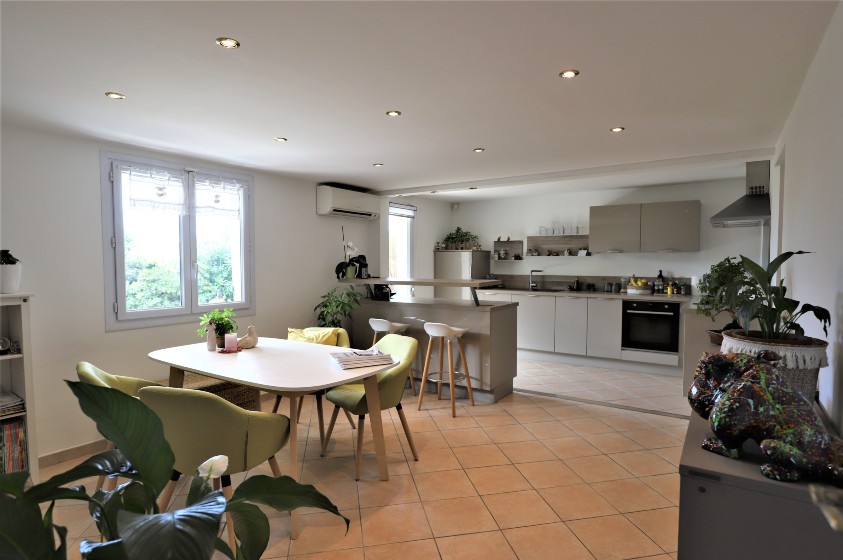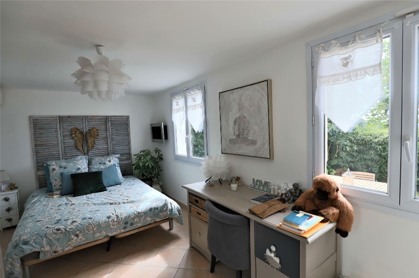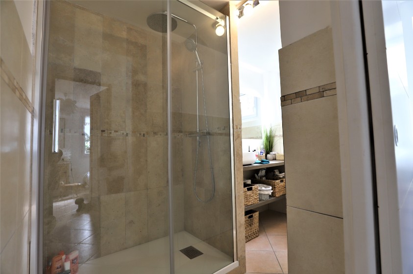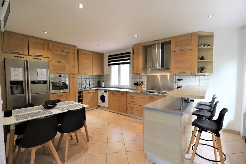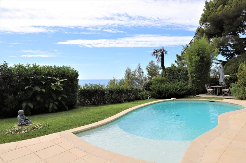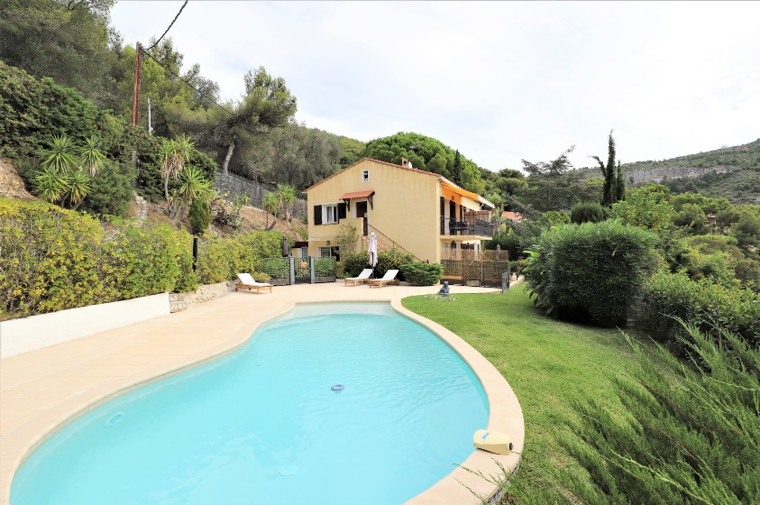 Очаровательный дом в отличном состоянии жилой площадью около 160 м2, разделенный на 2 независимые квартиры, на красивом участке 2307 м2 с прекрасным открытым видом на море и горы, хорошим солнечным светом, бассейном и парковкой на 3/4 машины.